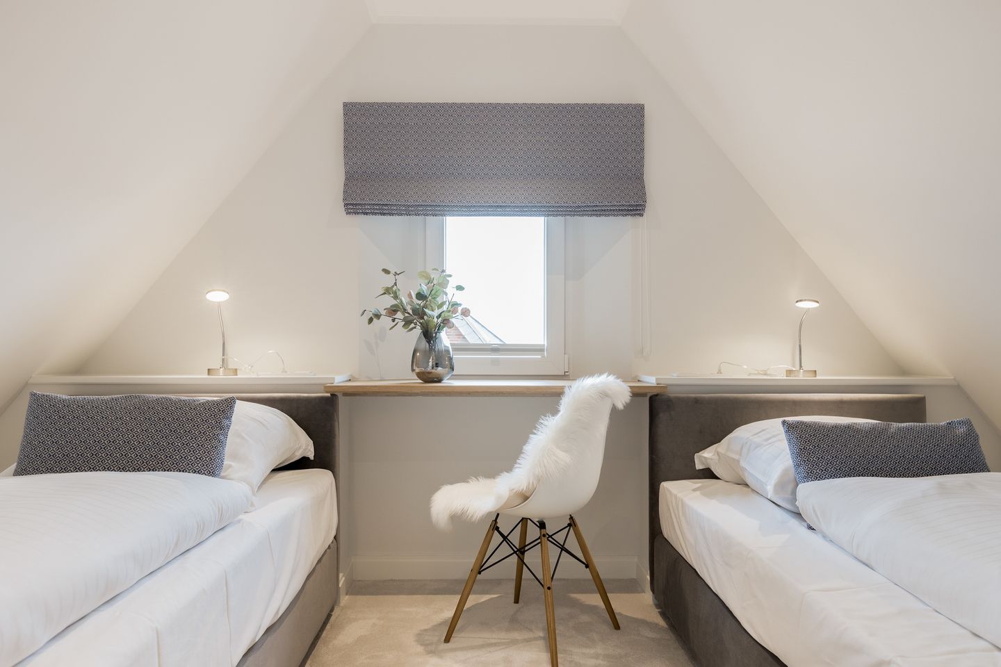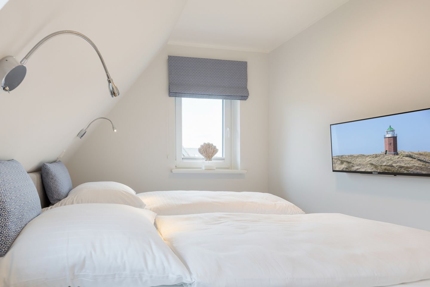 Im Dachgeschoss der Wohnung erwartet Sie ein weiterer, sehr gemütlich eingerichteter Raum mit zwei Einzelbetten und einem weiteren Flatscreen-TV.