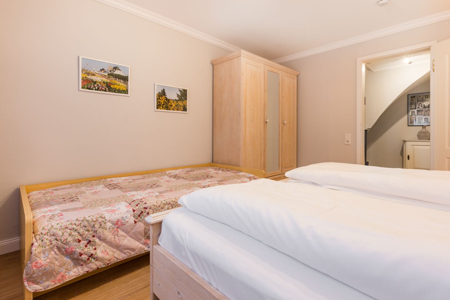 UG: 1 Raum mit Doppelbett (180x200cm) sowie einem Einzelbett (90x200cm). Dusche und WC.
