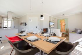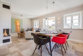Lichtdurchfluteter, wertig gestalteter Wohnraum mit Gaskamin, Sitzecke, schöner Esstafel mit Eames-Plastic Chairs. Integrierte Luxusküche mit Induktionsherd und Nespresso-Maschine. Kombinierte Microwelle mit Backofen. Überkomplette Küchenausstattung. Kleine Diele mit Gäste-WC. Sehr schöner Terrassenbereich mit hochwertigem Gartenmobiliar. Hübsch angelegter Garten in Südausrichtung.