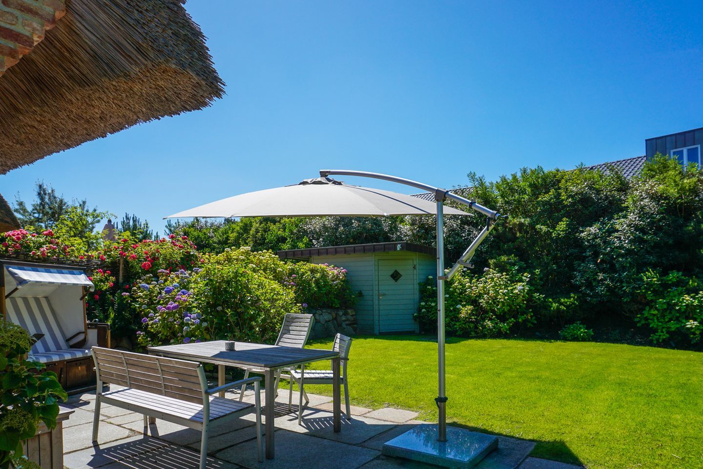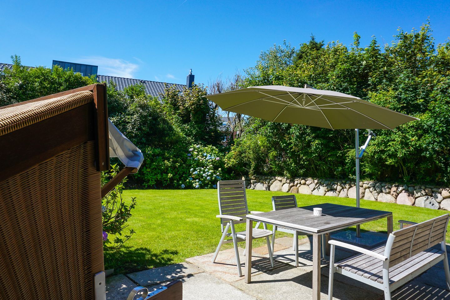 Ein weiteres Highlight ist der wunderschöne Gartenbereich, der liebevoll für Sie angelegt wurde. Open Air kommen Sie in den Genuss einer großenl Terrassenfläche, perfekt sonnig zum Süden ausgerichtet.