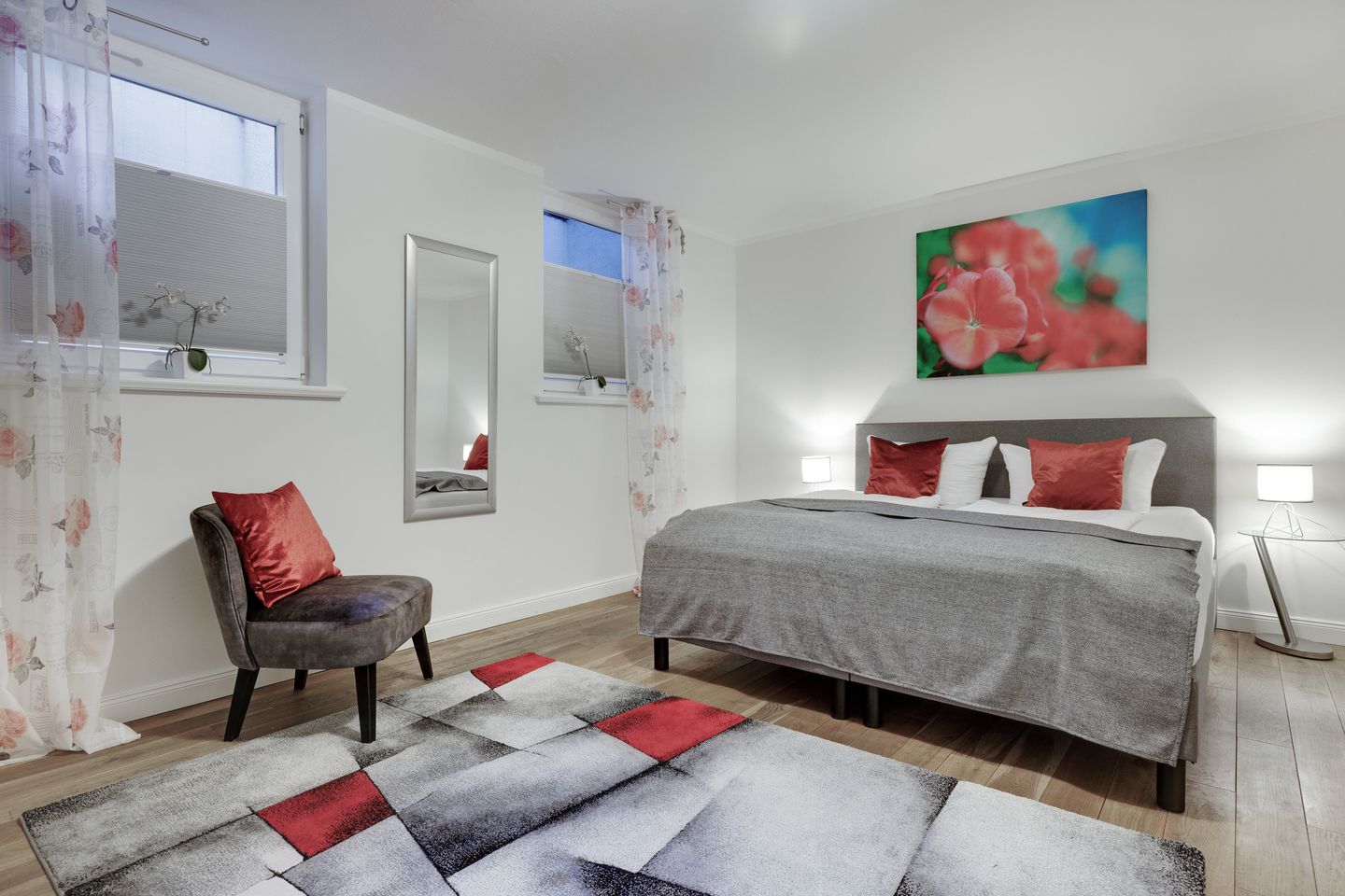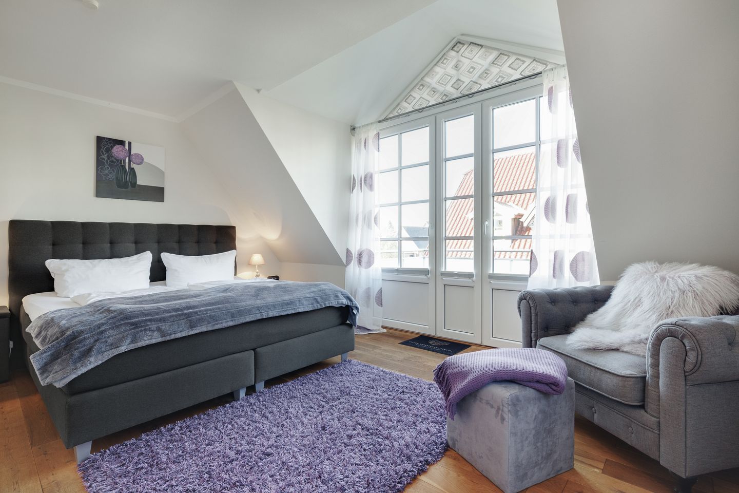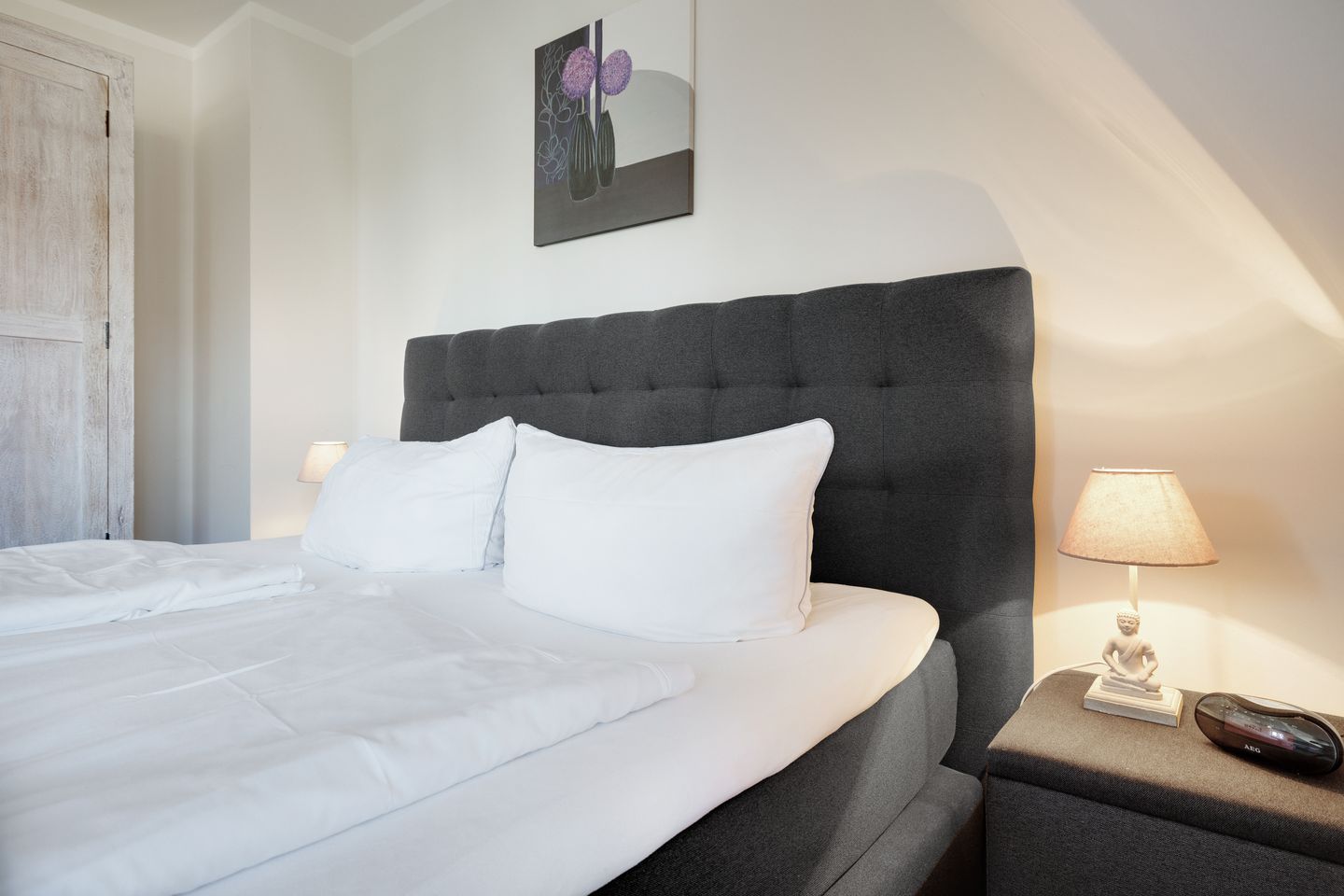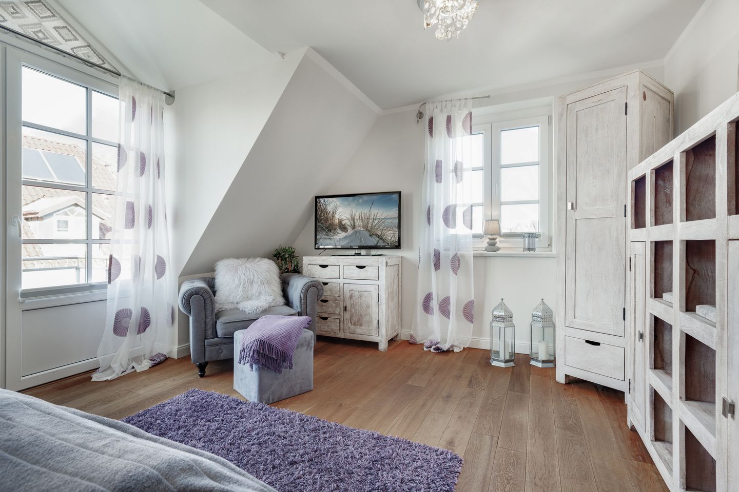Im Untergeschoss des Hauses befindet sich ein Zimmer mit Doppelbett und Flatscreen-TV, sowie ein Badezimmer mit Dusche, Badewanne und WC. Außerdem finden Sie im Untergeschoss einen weiteren Raum mit Waschmaschine und Trockner. Das Hauptschlafzimmer des Hauses befindet sich im Obergeschoss und verfügt ebenfalls über ein Doppelbett und einen Flatscreen-TV sowie über einen eigenen Balkon. Auch auf dieser Ebene finden Sie außerdem ein weiteres Badezimmer mit Dusche und WC. Im Dachgeschoss des Hauses finden dann die Kinder ihr Paradies mit zwei Einzelbetten und einer gemütlichen Kuschelecke, die zum Toben und Lesen einlädt. Dem Familienurlaub auf der Insel Sylt steht also nichts mehr im Wege.