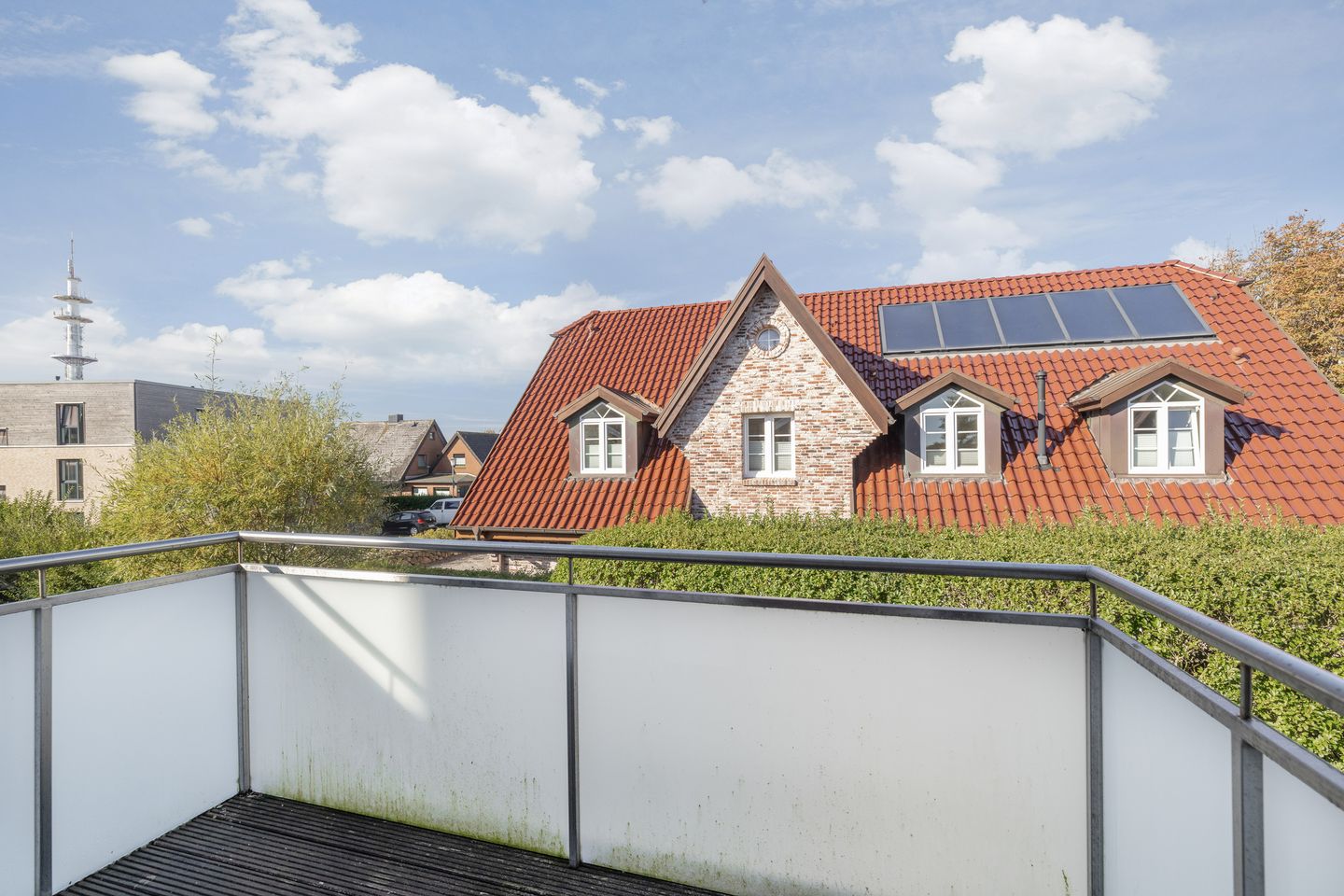 OG: Schlafzimmer mit Doppelbett (180x200cm), Flatscreen-TV und eigenem Balkon, Badezimmer mit Dusche und WC