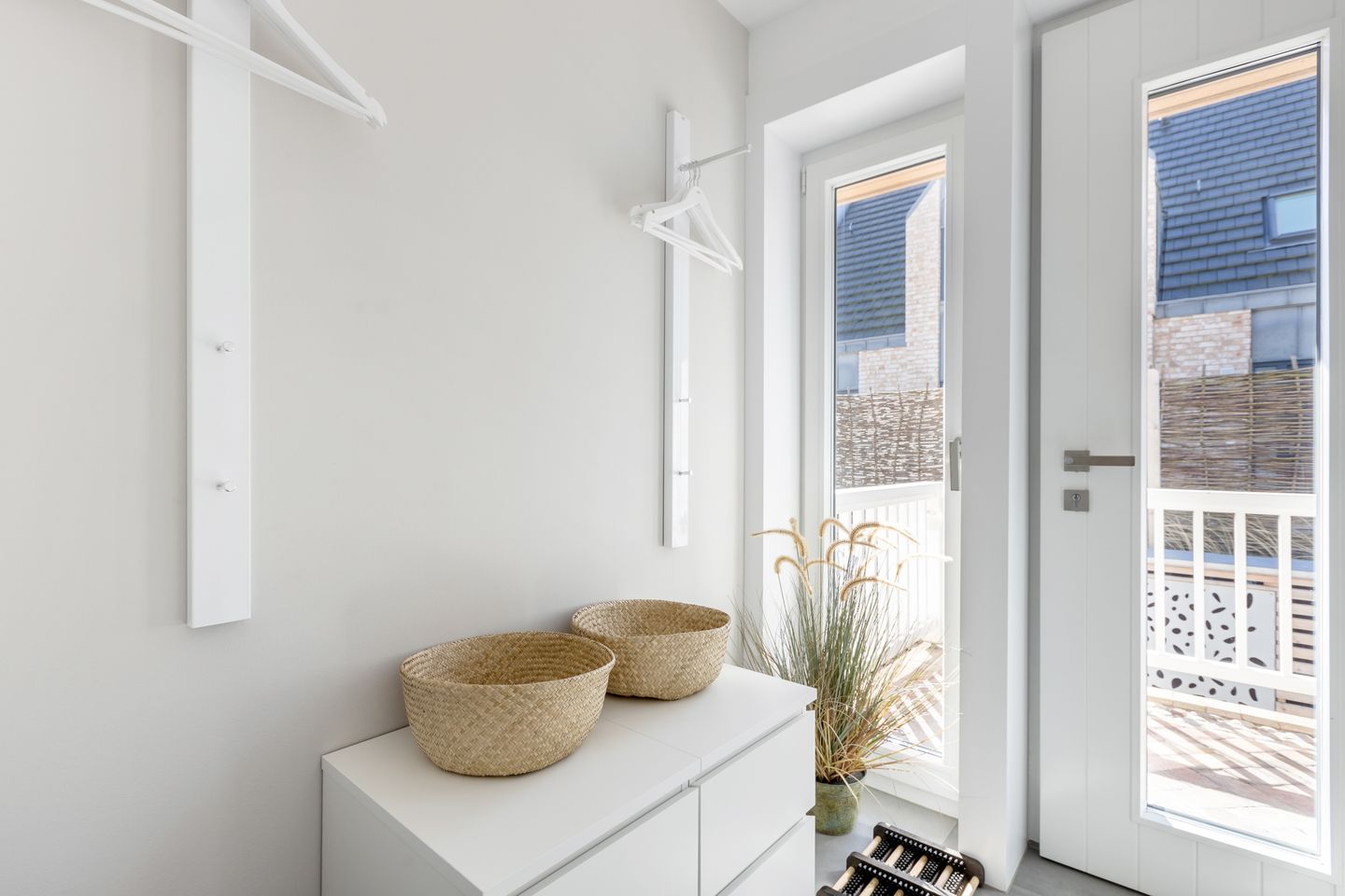 Ein Einbauschrank und Kommoden bieten genügend Platz für Ihre Bekleidung.