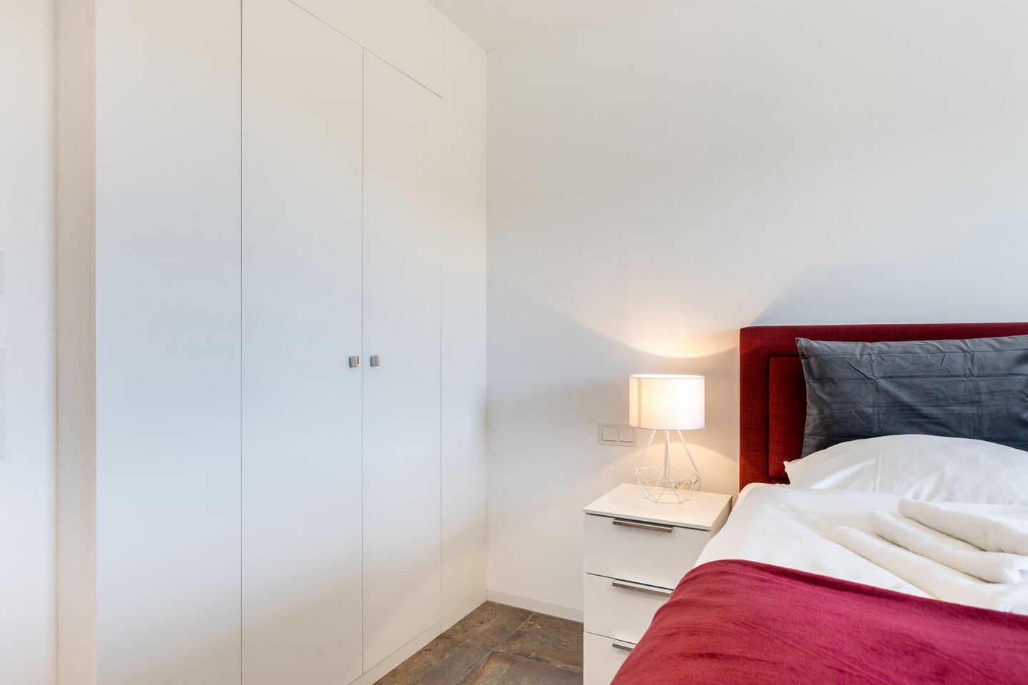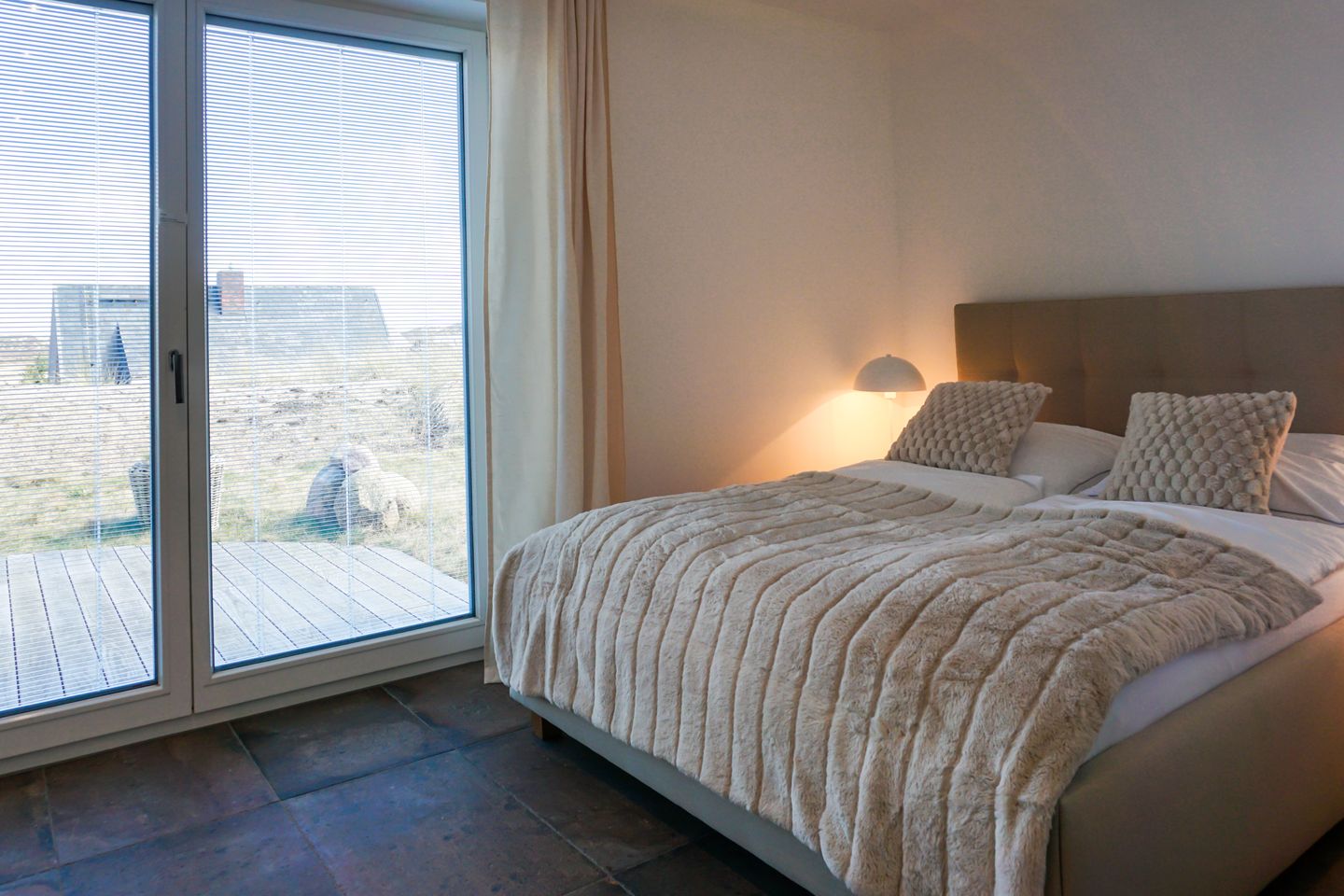 Im Schlafzimmer ruhen Sie in einem Dormastyle Boxspringbett ( 180 x 200 ). Vom Bett aus können Sie morgens die aufgehende Sonne genießen.