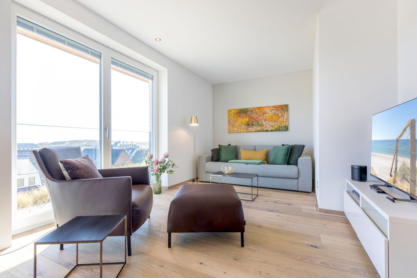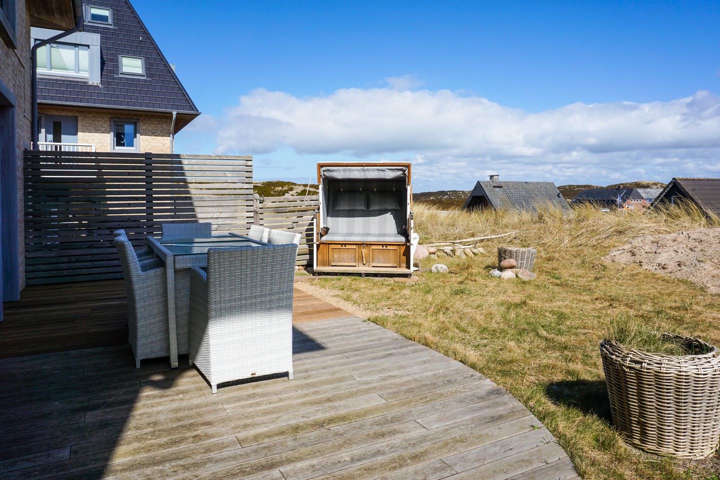 Genießen Sie die Aussicht auf die Naturlandschaft von Hörnum. Nur 200 Meter vom Strand entfernt liegt diese wunderschöne Wohnung oben auf der Düne vor der City Hörnums.