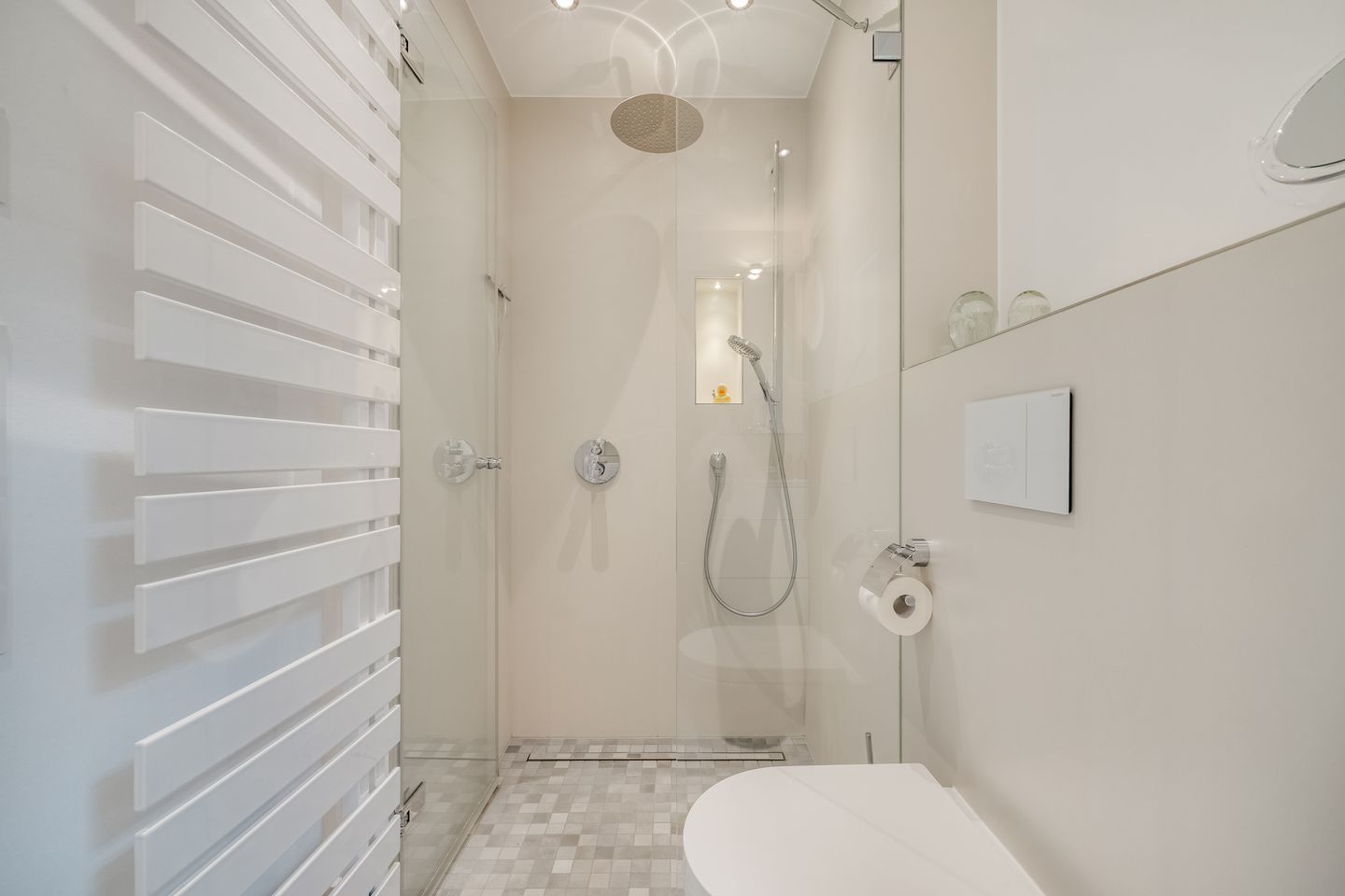 Im Untergeschoss erwarten Sie zwei Schlafräume mit Flatscreen-TV, die jeweils Zugang zu Ihrer zweiten Terrasse mit Hängematte haben. Ein Duschbad finden Sie ebenfalls auf dieser Ebene.