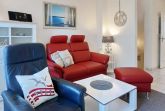 Der Wohnraum des Domizils bietet Ihnen eine große Couchecke zum Entspannen und durch die bodentiefen Fenster fällt viel Licht in das Wohnzimmer. Am geräumigen Esstisch können Sie Ihre Urlaubsleckereien genießen und die offene Küche bietet Ihnen mit ihrer vollen Ausstattung alles, was das Urlaubsherz begehrt. Vom Wohnraum aus betreten Sie Ihre sonnige Süd-Terrasse, die von April bis Oktober möbliert ist. Im Erdgeschoss der Wohnung finden Sie außerdem ein Gäste-WC.
