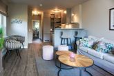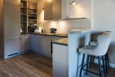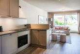 EG: Wohnzimmer mit LCD TV; offene Küche mit Geschirrspüler, Microwelle, Nespresso Maschine und Backofen;