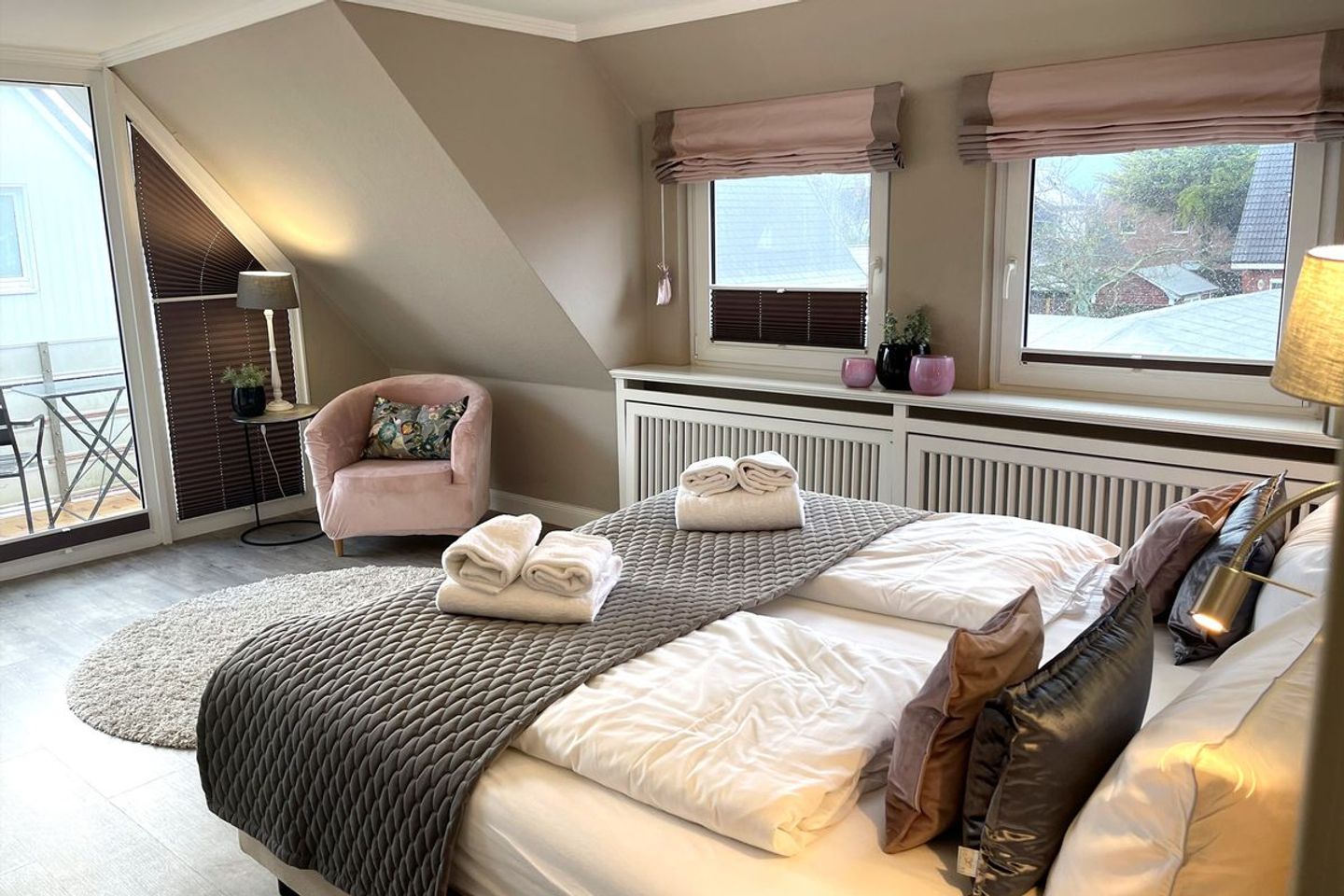 Insgesamt vier Schlafzimmer warten im Haus auf Ihre nächtlichen Besucher – drei davon verfügen über komfortable Boxspringbetten in Hotel Qualität, im neu ausgebauten Dachgeschoss nächtigen
