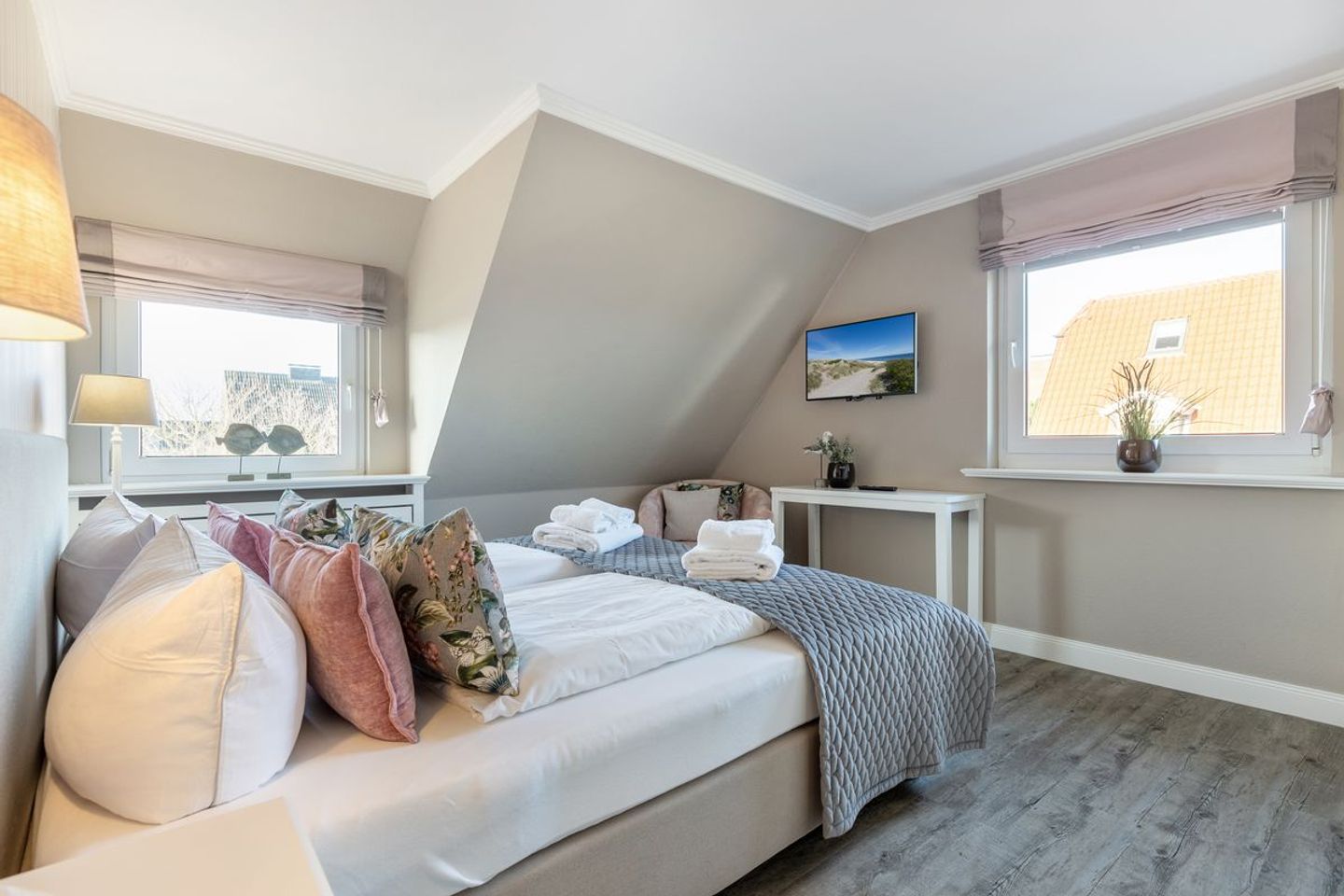Im Ferienhaus Princessa 12b urlauben Sie wahrhaft königlich! Bis zu acht Personen finden hier ausreichend Platz auf vier Etagen. Das gesamte Haus ist im modernen Landhausstil eingerichtet, die Farben Beige und Weiß geben überall den Ton an und sorgen in Kombination mit vielen Fenstern für eine offene und helle Gemütlichkeit.