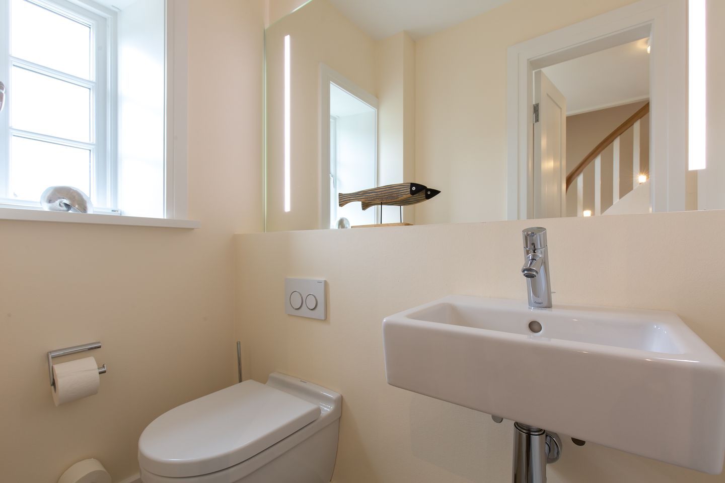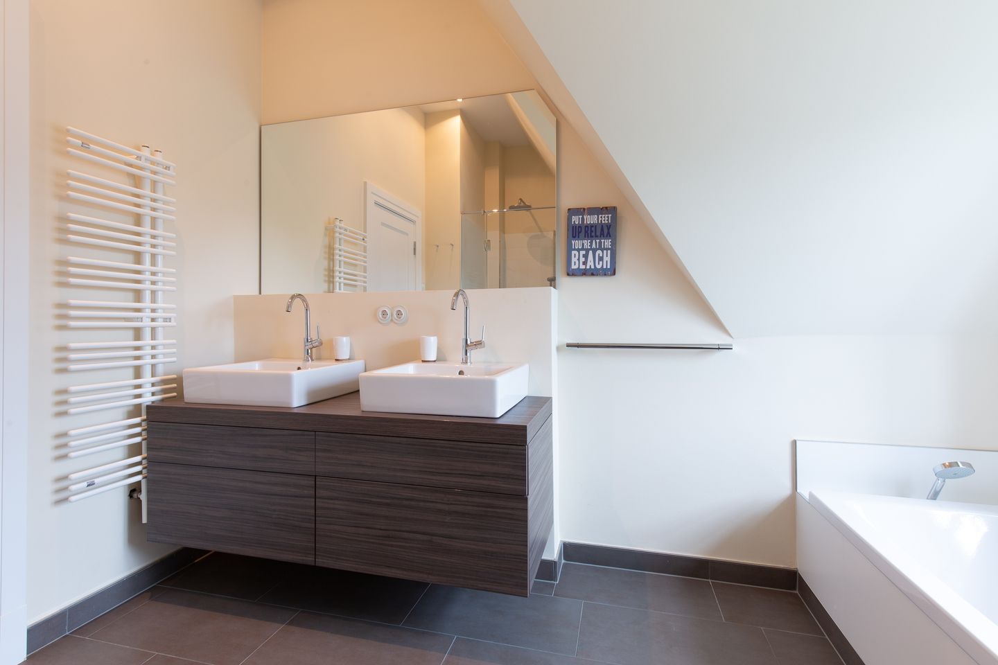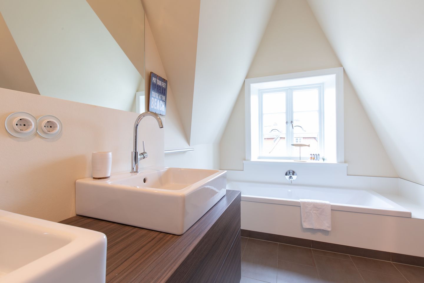 Ein Luxusbad mit großer Dusche, Badewanne und Doppelwaschtisch lässt Sie bester Laune in den Sylter Urlaubstag starten.