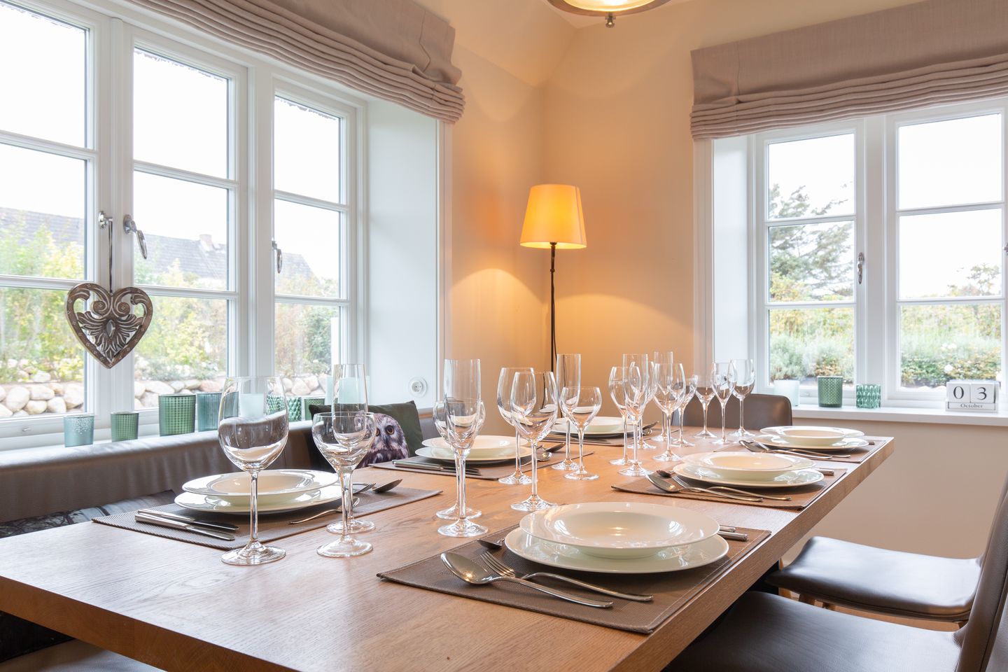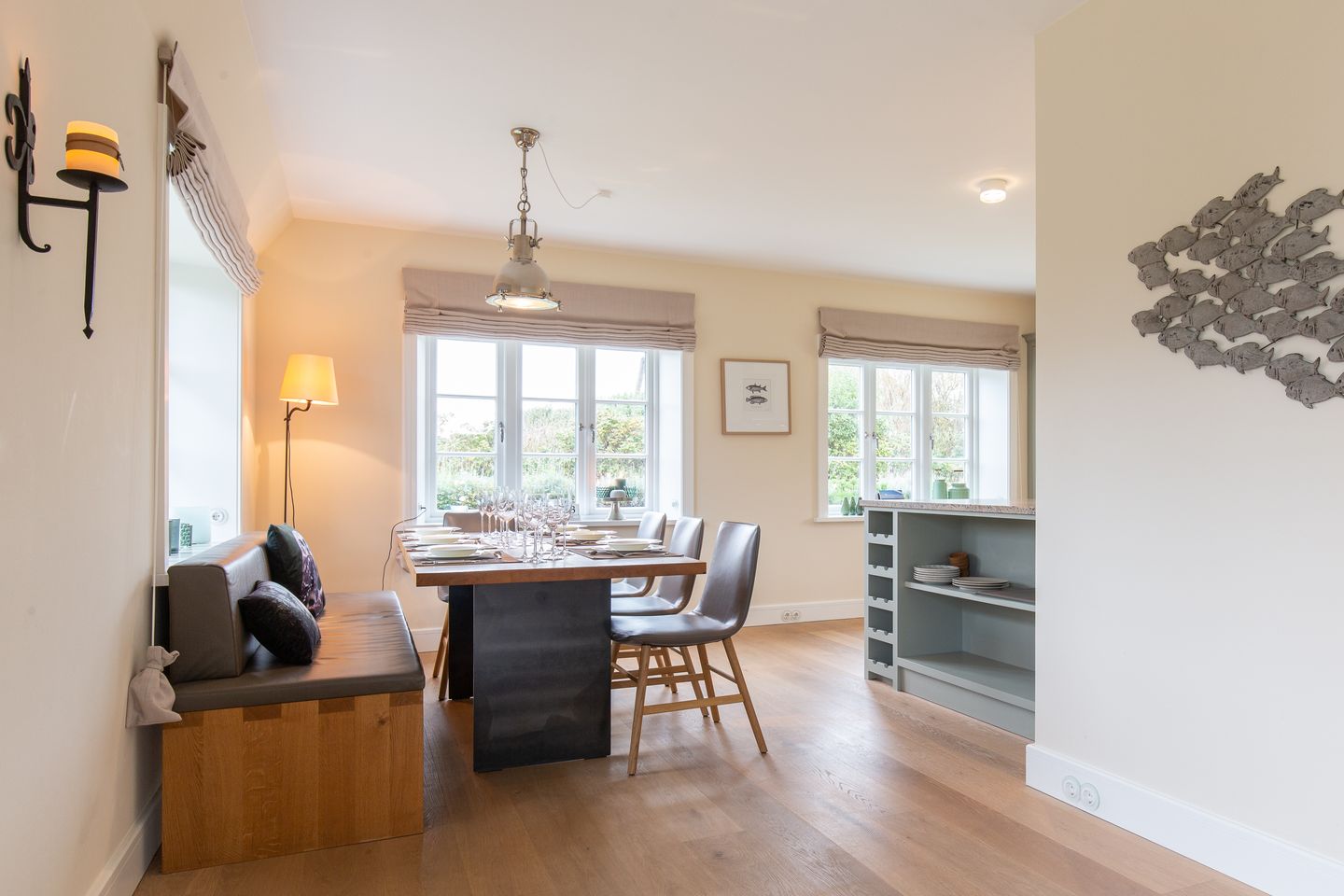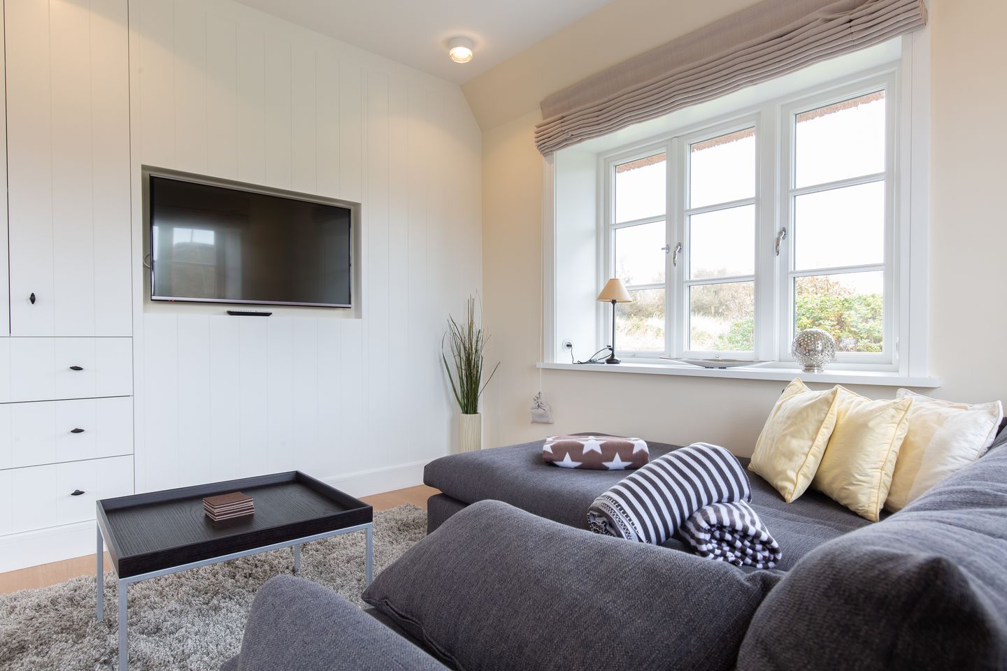 Freistehendes State-of-the-art-Einzelhaus in strandnaher Lage Wenningstedts. Ca. 180 qm Nutzfläche im Erd-, Ober- und Untergeschoss empfangen bis zu 8 Personen.