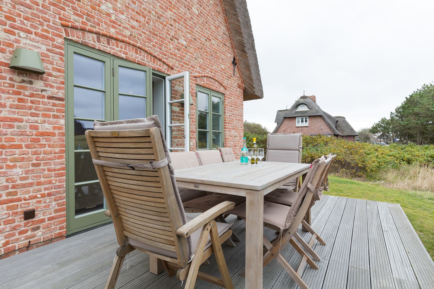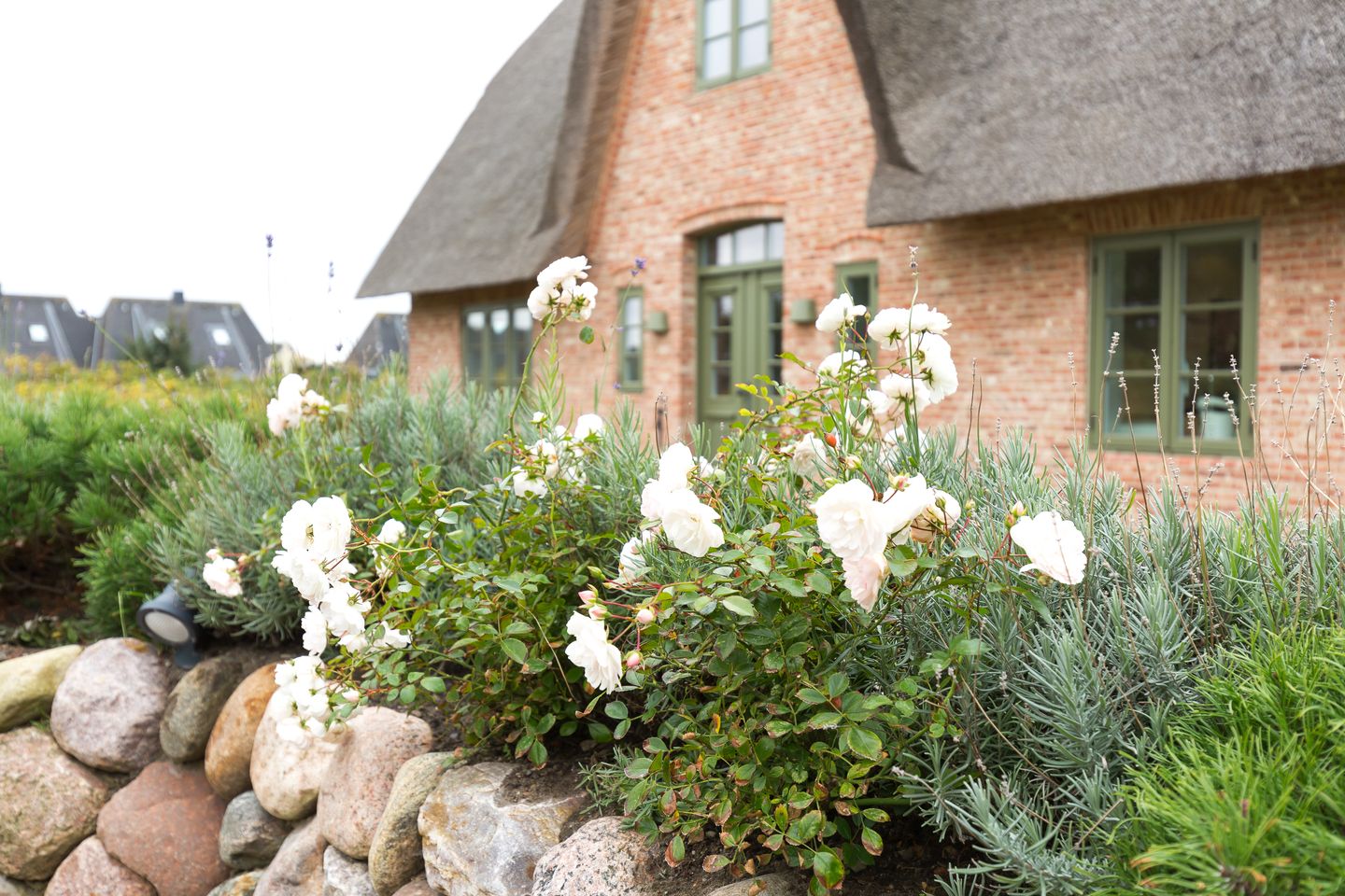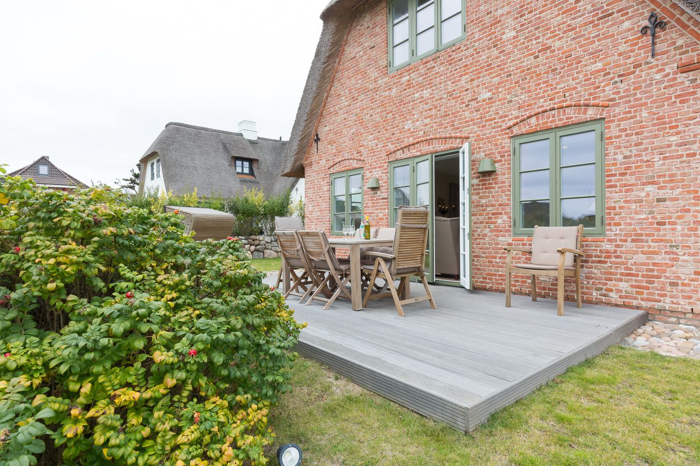 Ihr eigenes, sehr schön angelegtes Grundstück ist ein Traum. Hier laden verschiedene Ecken ein, die Sylter Sonne zu genießen und das nahe Meer rauschen zu hören. Ein besonders schönes Kleinod stellt zweifelsohne der dünengesäumte Strandkorbbereich dar.