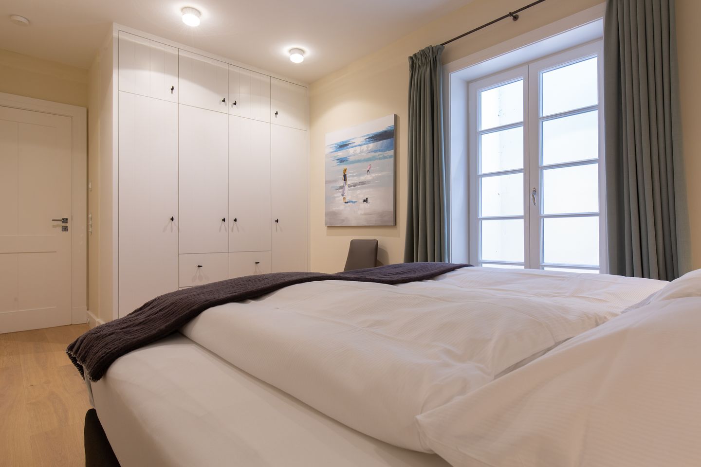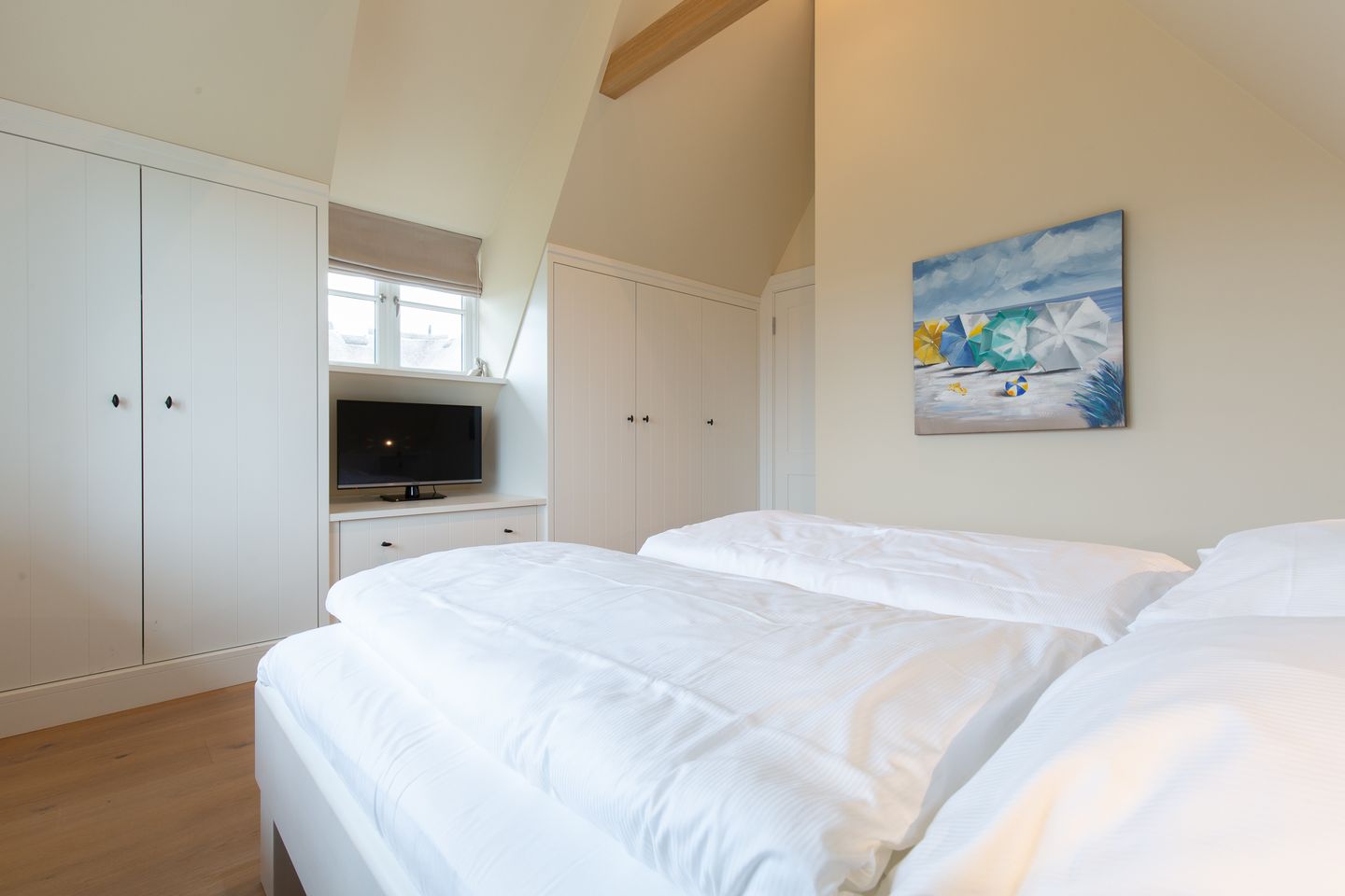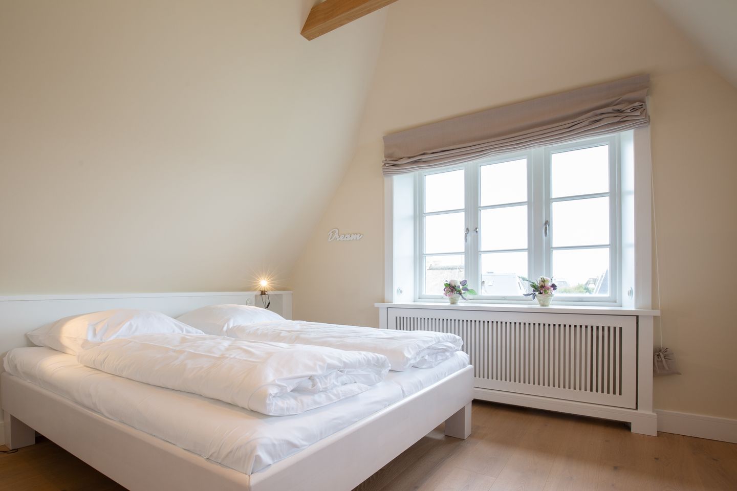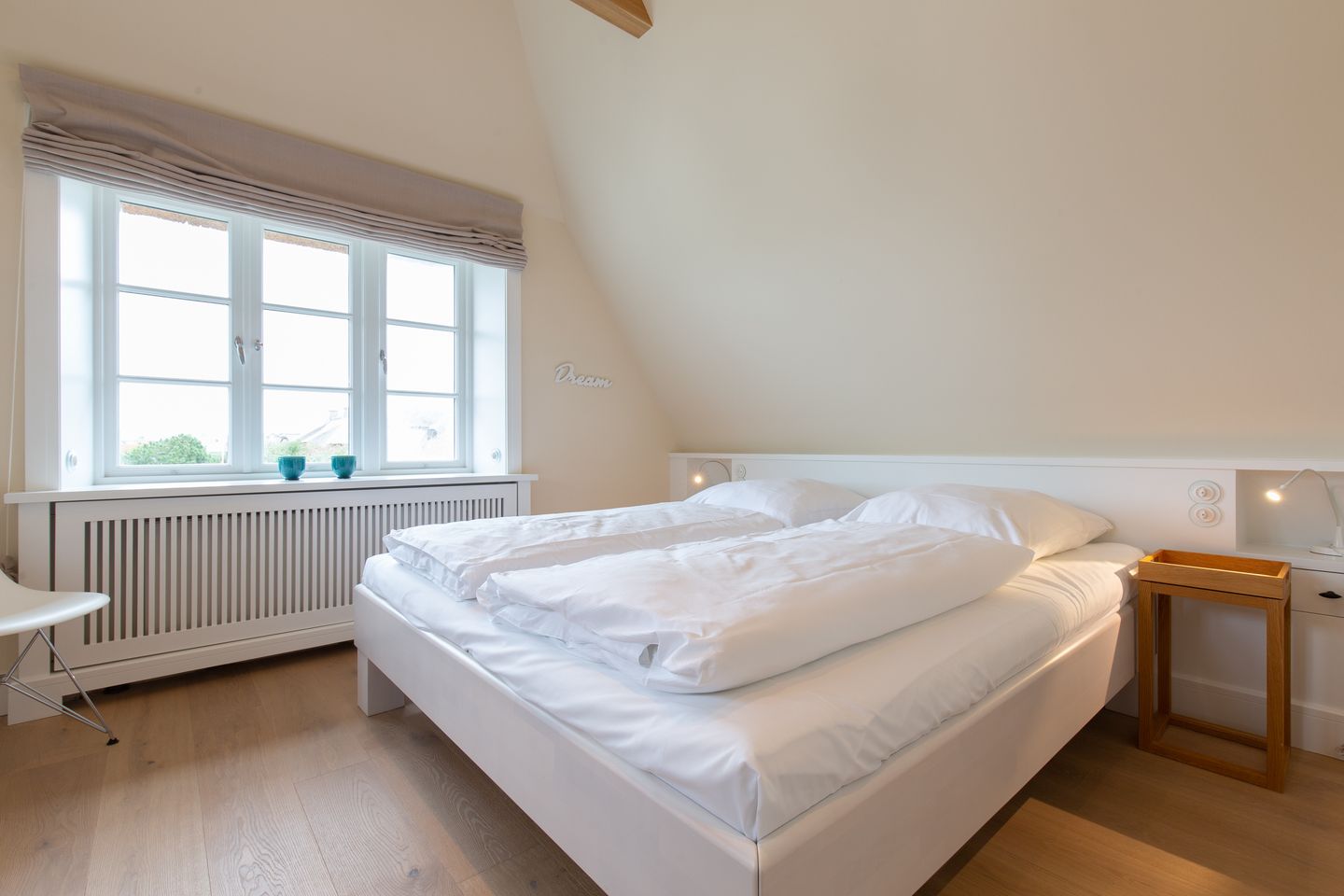 Im Obergeschoss dürfen Sie sich auf zwei wunderschöne Schlafräume freuen. Extra hohe Decken mit sichtbarer, offener Balkenlage schafft eine wahrlich traumhafte Raumatmosphäre. Sehr schöne Tischlereinbauten lassen auch Ihre größere Urlaubsgarderobe verstauen.