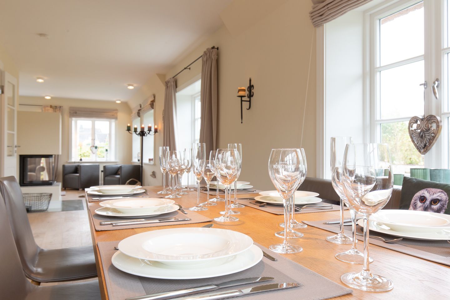 Auch Ihre Küche ist ein Traum, bietet diese voll ausstaffiert alles, auch ein anspruchsvolles Menue zu zaubern. An Ihrem schönen Holztisch mit Bank und Design-Stühlen (u.a. Vitra) lässt sich dieses bei einem guten Glas Rotwein bestens zelebrieren. Oder einfach bei einem morgendlichen Espresso mit schweifendem Blick über Ihren traumhaften Garten easy in den Tag starten.