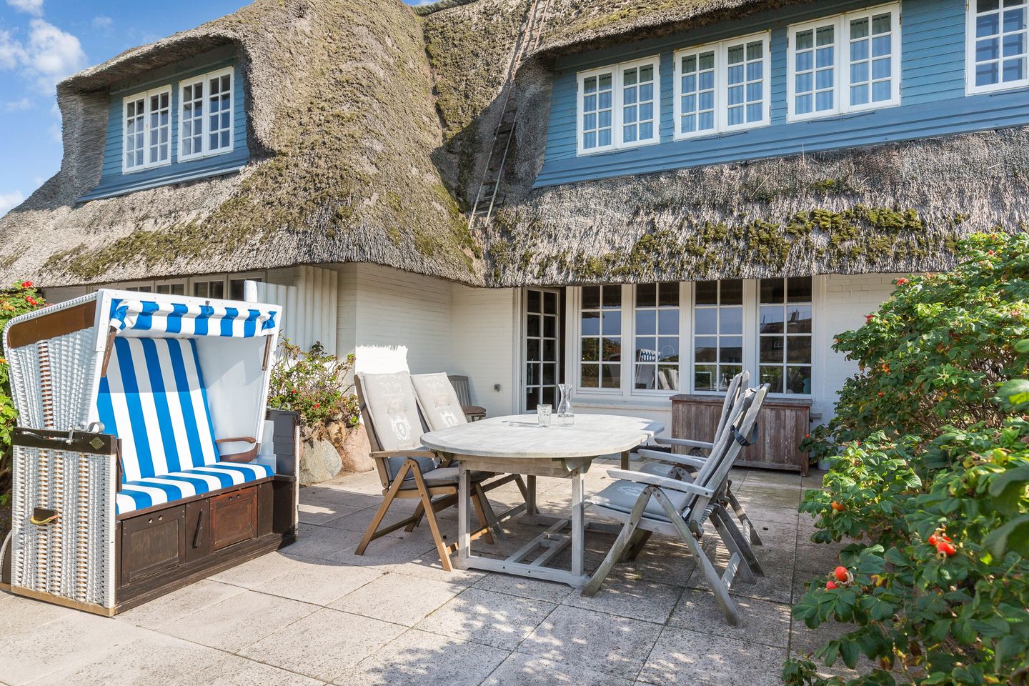Eingebettet in eine traumhafte, naturgeschützte Dünen-, Heide- und Heckenrosenlandschaft sind der Dünenwanderweg nach Westerland und das Meer zum Greifen nah, der Strandübergang liegt vor Ihrer Tür – hören Sie schon das Meeresrauschen? Eine bessere Lage werden Sie in Wenningstedt nicht finden – zahlreiche romantische Sonnenuntergänge inklusive.