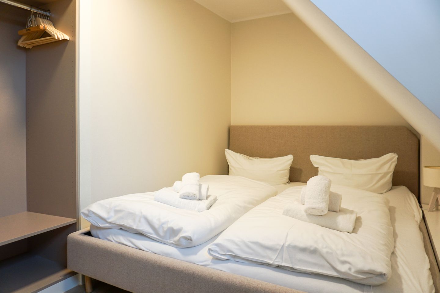 Im Schlafzimmer lädt ein kuscheliges Doppelbett zu süßen Träumen ein und auch hier wurde viel Wert auf