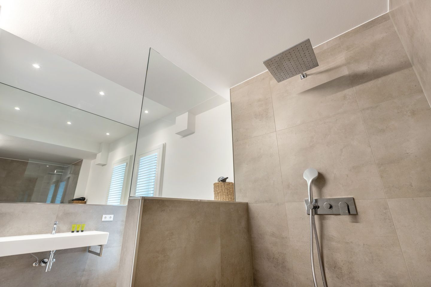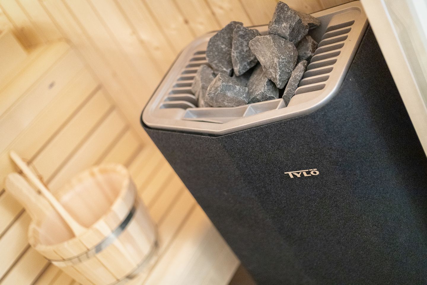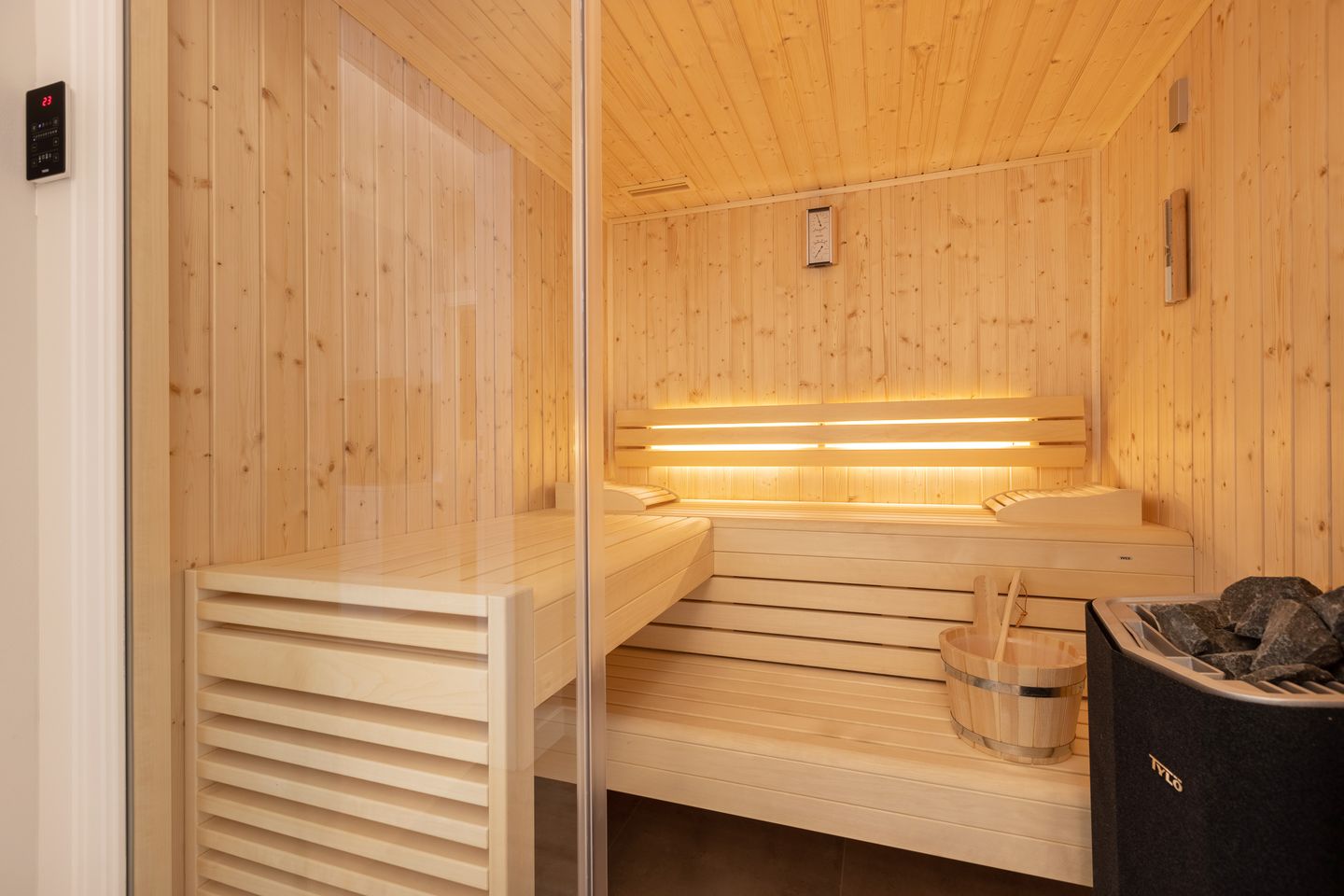 UG: zwei Räume mit Doppelbett, TV und en Suite Bad mit Dusche und WC, Sauna.