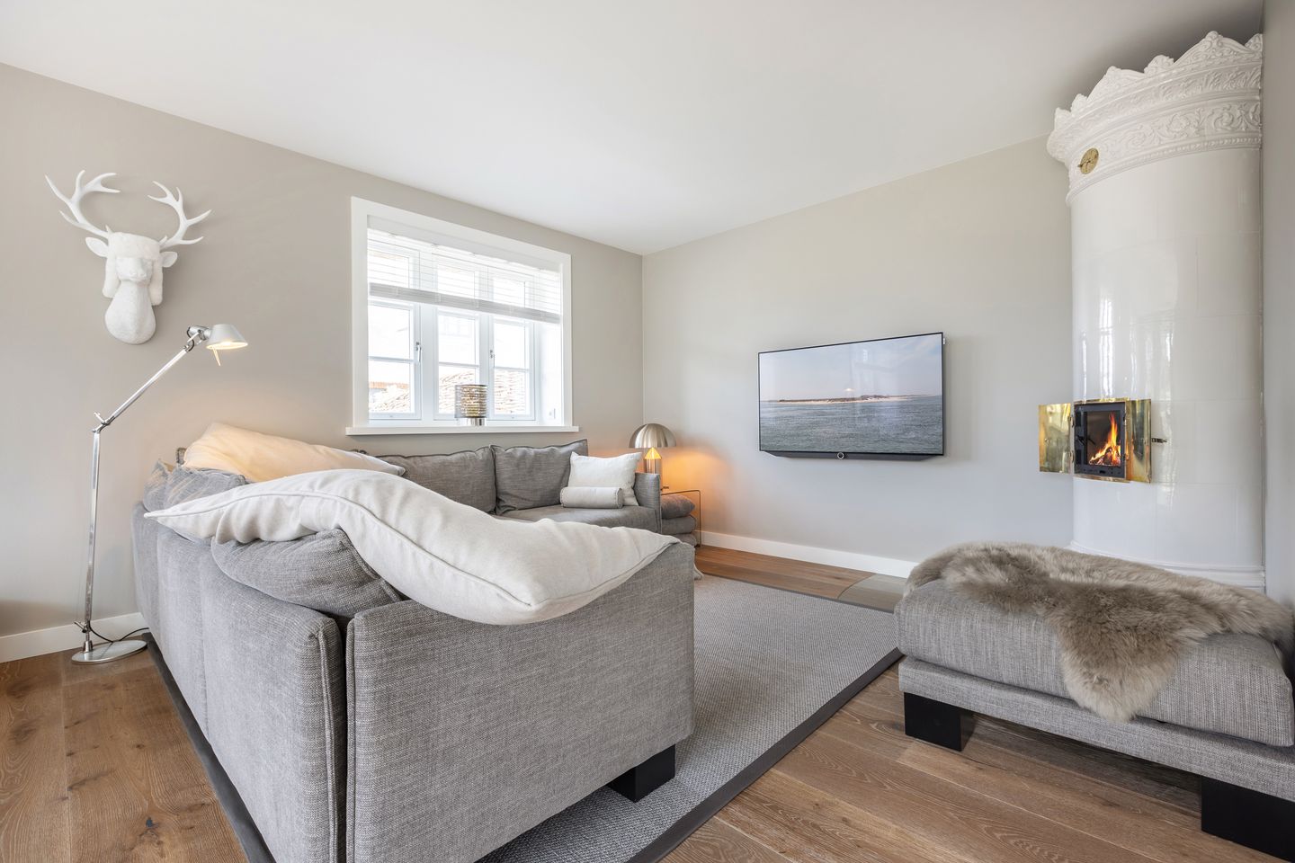 EG: Wohnraum mit TV, Kachelofen, W-Lan, Essbereich, offene Küche mit Backofen, Induktionsherd, Geschirrspülmaschine, Gäste-WC, großer abgeschlossener Garten mit Terrasse, Gartenmöbel und Strandkorb (ca. April-Oktober).