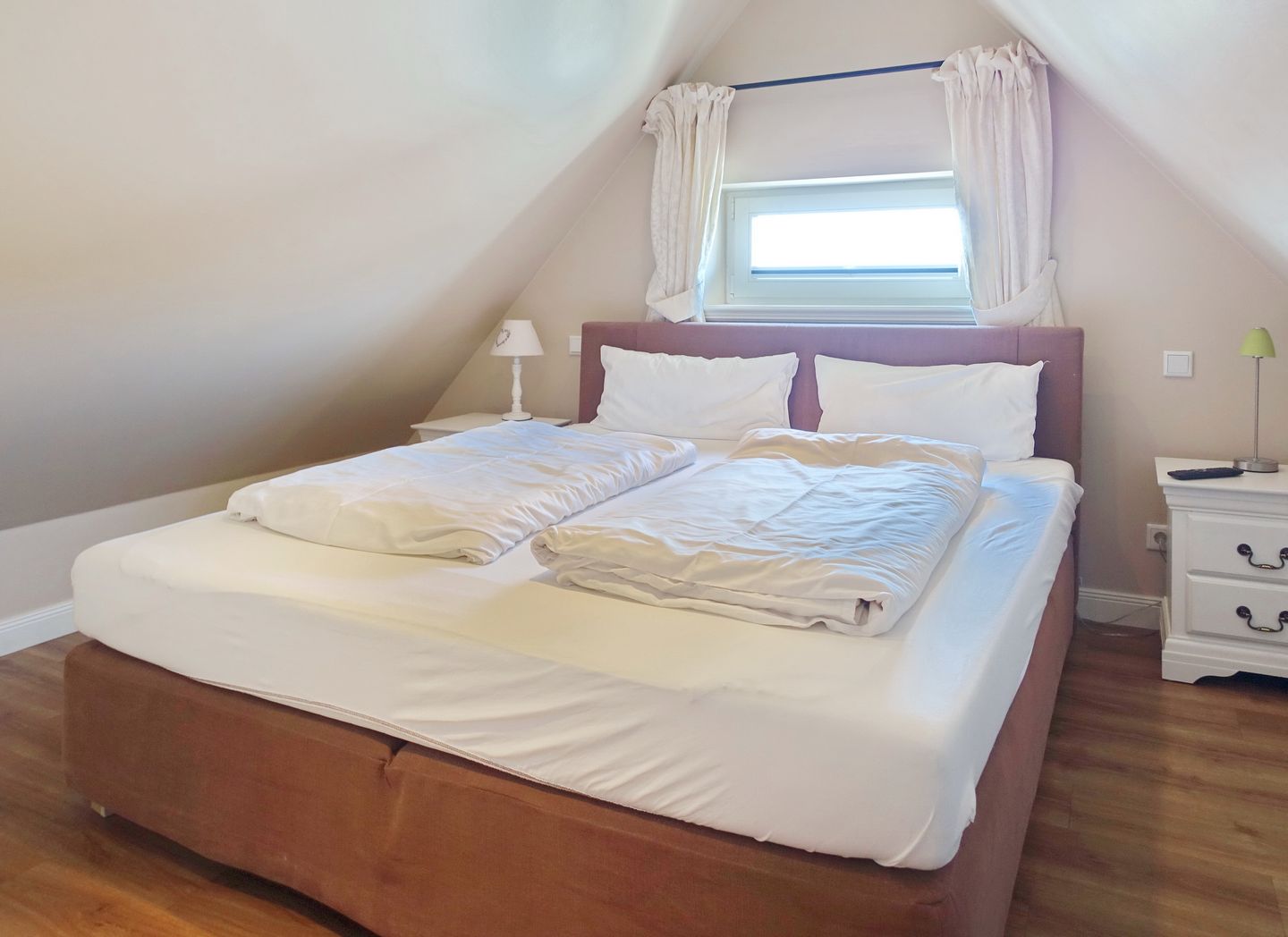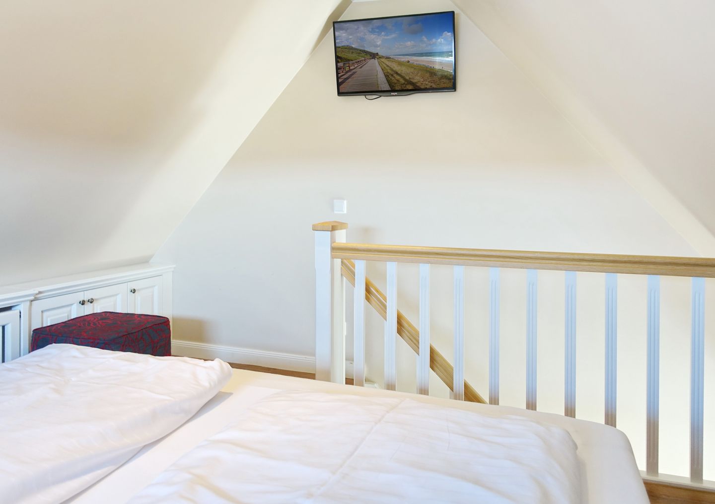DG: Ein Raum mit Doppelbett (180x200) und TV.