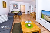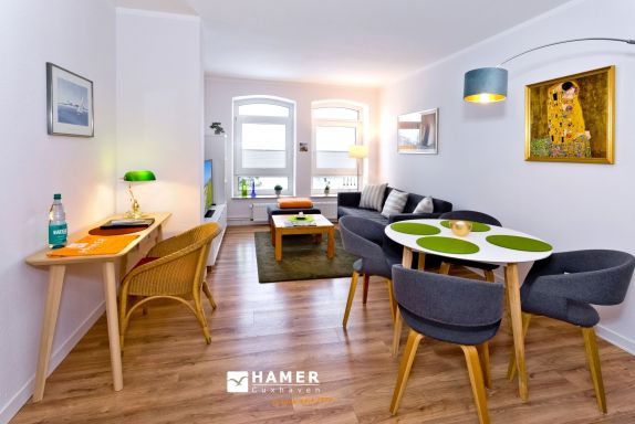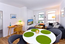 Schöne 2-Raum-Wohnung für max. 2 Personen im Hochparterre (ohne Aufzug) auf ca. 53m². Wohnzimmer mit gemütlicher Couch, Kabel-TV, Esstisch. Vollausgestattete separate Küche (Geschirrspüler, Backofen mit integrierter Mikrowelle, 2-Platten-Ceranfeld), Dusche/WC, Schlafzimmer mit Doppelbett und Zugang zum sonnigen Südbalkon, kostenfreies Wlan, PKW-Stellplatz #2 vor dem Haus, Nichtraucher und keine Haustiere.