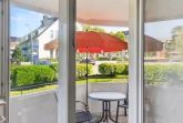 Treten Sie ein in einen offenen Wohnbereich, der mit zeitgenössischen Möbeln und warmen Akzenten gestaltet ist. Die voll ausgestattete Küche lädt dazu ein, köstliche Mahlzeiten zuzubereiten, die Sie am Esstisch für vier Personen genießen können. Die großen Fenster lassen das Tageslicht herein und bieten einen herrlichen Blick auf die umliegende Natur.