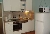 Moderne Einbauküche ausgestattet über einen Vier-Plattenherd mit Backofen und Ceranfeld, grossem Kühlschrank mit Gefrierfach, Spülmaschine, Mikrowelle, Kaffeemaschine, Wasserkocher, etc. und selbstverständlich auch über ausreichend Geschirr, Besteck, Töpfe und Küchenutensilien verfügt.