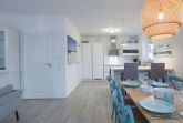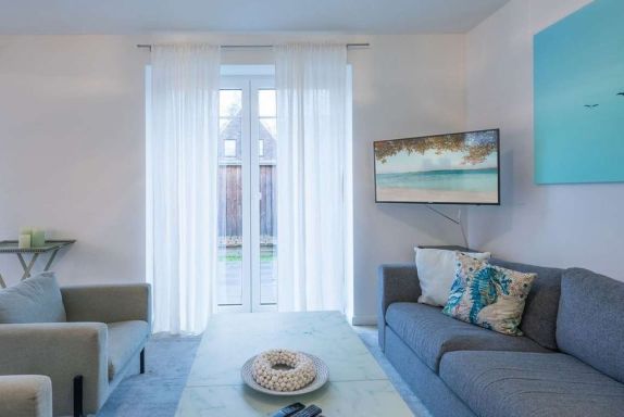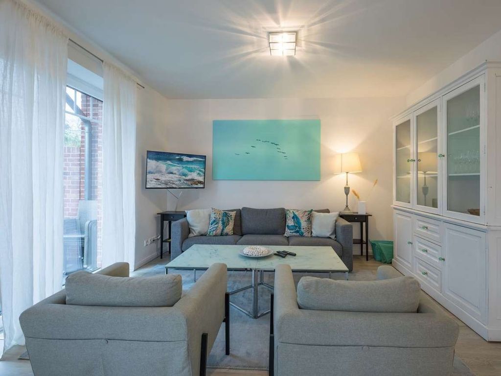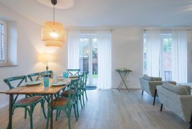 Kleine Flucht, 4-Zimmer-Doppelhaushälfte 120 m2 auf 2 Stockwerken. Sehr stilvoll und gemütlich eingerichtet: offenes Wohn-/Esszimmer mit Sat-TV (Flachbildschirm). Ausgang zur Terrasse. Grosse, offene Küche (4 Kochplatten, Backofen, Geschirrspüler, Toaster, Wasserkocher, Tiefkühler, elektrische Kaffeemaschine) mit Esstisch. Dusche/WC. Bodenheizung. Obergeschoss: 2 Zimmer, jedes Zimmer mit 1 Doppelbett (1 x 180 cm, Länge 200 cm). 1 Zimmer mit 2 Betten (90 cm, Länge 200 cm). Bad/Dusche/WC. Terrassenmöbel, Gartengrill, Liegestühle. Zur Verfügung: Kinderhochstuhl, Babybett. Internet (Wireless LAN). Parkplatz (überdacht). Bitte beachten: geeignet für Familien. Nichtraucher-Unterkunft. Maximal 1 Haustier/Hund erlaubt.