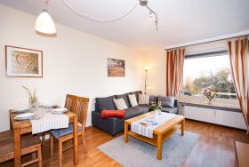 Die Ferienwohnung befindet sich im 2. Stock der beliebten Hausanlage Hanseat II direkt hinter dem Deich. Von Ihrem Balkon haben Sie zum einen den Blick ins Grüne und zum anderen den Blick aufs Meer. Zum bummeln lädt die weitläufige Promenade mit ihren vielen Geschäften und Restaurants ein.