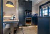 Im Erdgeschoss ist vom Flur aus die geschlossene Küche mit kleinem Essbereich und das separate Wohn- und Esszimmer begehbar. Die moderne und hochwertig ausgestattete Küche lässt mit Induktionsherd und integrierter Dunstabzugshaube, Mikrowelle mit Backofen-Funktion, Weinkühlschrank, Nespresso-Kapselmaschine und SodaStream Wassersprudler keine Wünsche offen. Ein gemütlicher Wohnraum mit freiem Blick in den Garten verfügt über einen Sofa- und Essbereich, die mit Kamin und TV zum Verweilen einladen.