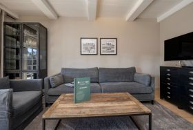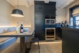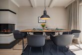 Im Erdgeschoss ist vom Flur aus die geschlossene Küche mit kleinem Essbereich und das separate Wohn- und Esszimmer begehbar. Die moderne und hochwertig ausgestattete Küche lässt mit Induktionsherd und integrierter Dunstabzugshaube, Mikrowelle mit Backofen-Funktion, Weinkühlschrank, Nespresso-Kapselmaschine und SodaStream Wassersprudler keine Wünsche offen. Ein gemütlicher Wohnraum mit freiem Blick in den Garten verfügt über einen Sofa- und Essbereich, die mit Kamin und TV zum Verweilen einladen.