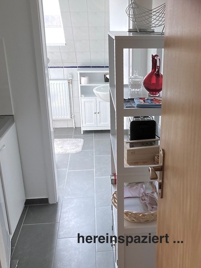 Dieses kuschelige 1-Raum-Apartment im 1. OG eines alleinstehenden Hauses (Zugang ohne Fahrstuhl) ist hell und gemütlich möbliert. Es hat einen kombinierten Wohn-/Schlafraum und verfügt über eine gut ausgestattete Küchenzeile mit ausreichend Geschirr, Kühlschrank/Gefrierfach, Geschirrspüler, Kaffeemaschine, Wasserkocher und Toaster. Ihren Kaffee können Sie hier auch in einem Bodum Kaffeemaker zubereiten und für Ihre Mahlzeiten steht ein 2 Flammen-Ceranfeld bereit.