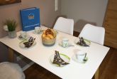 - großer Esstisch mit vier bequemen Freischwinger Stühlen.