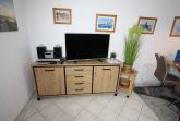 Die vollausgestattete Küche verfügt u. a. über eine Spülmaschine, eine Kühlgefrierkombination, eine Kaffeemaschine sowie Mikrowelle, Wasserkocher und Toaster. Im Wohnbereich finden Sie ein TV-Gerät, einen CR/CD, DVD Player und eine einladende Schlafcouch.
