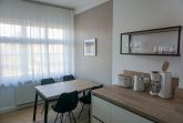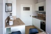 Die voll ausgestattete Küche überzeugt mit modernen Geräten und einer vollständigen Grundausstattung. Hierzu gehören ein Cerankochfeld mit Elektroanschluss, ein Backofen, ein Kühlschrank mit integriertem Gefrierfach sowie eine Spülmaschine, die Ihnen die tägliche Hausarbeit erleichtert. Zusätzlich stehen Ihnen eine Kaffeemaschine, ein Wasserkocher, ein Toaster sowie alle notwendigen Küchenutensilien, Geschirr und Besteck zur Verfügung. Geschirrhandtücher sind in der Ausstattung enthalten.