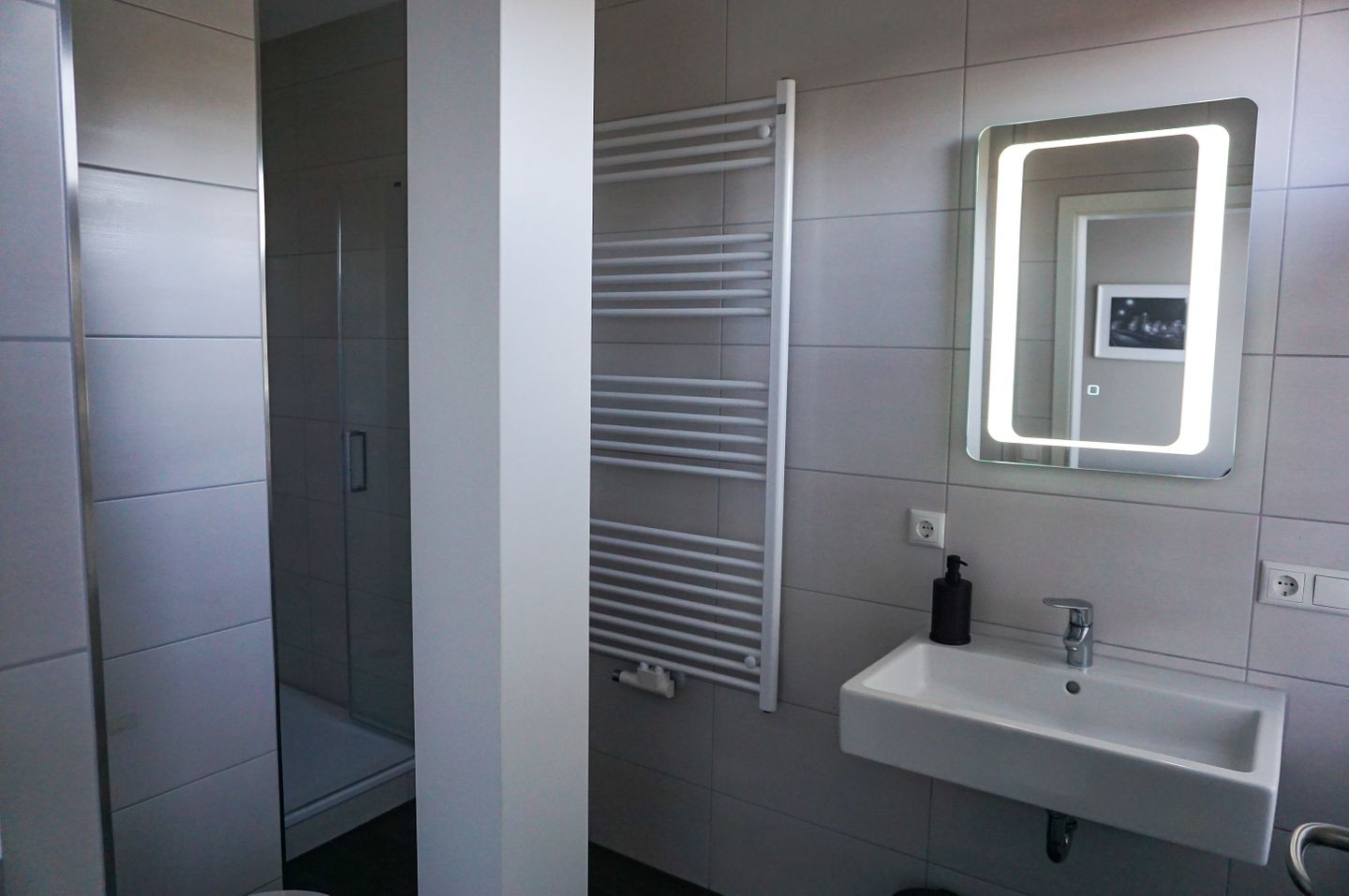 Das Badezimmer ist mit einer Dusche, Waschbecken, WC, Spiegel und Haartrockner modern und praktisch eingerichtet. Ein Fenster sorgt für Tageslicht und angenehme Belüftung. Selbstverständlich ist die Wohnung mit Heizung ausgestattet, sodass Sie sich auch in der kühleren Jahreszeit wohlfühlen können.