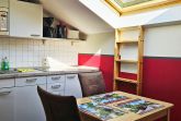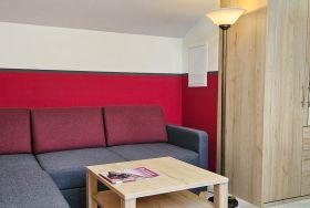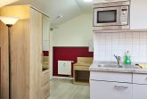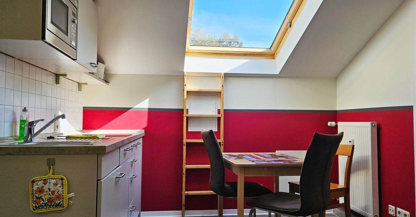 Die helle und freundliche 2-Raum Ferienwohnung befindet sich im 2. Obergeschoß (Dachgeschoß) im Bahnhof Heiligendamm. Auf 37 m² kann man einen entspannten Urlaub mit bis zu 3 Personen verbringen. Der Wohnbereich verfügt über eine Schlafcouch, das Schlafzimmer bietet ein Doppelbett und eine Kommode.
