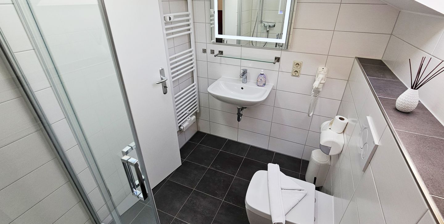 Ebenfalls gibt es ein Duschbad mit WC und Fenster.