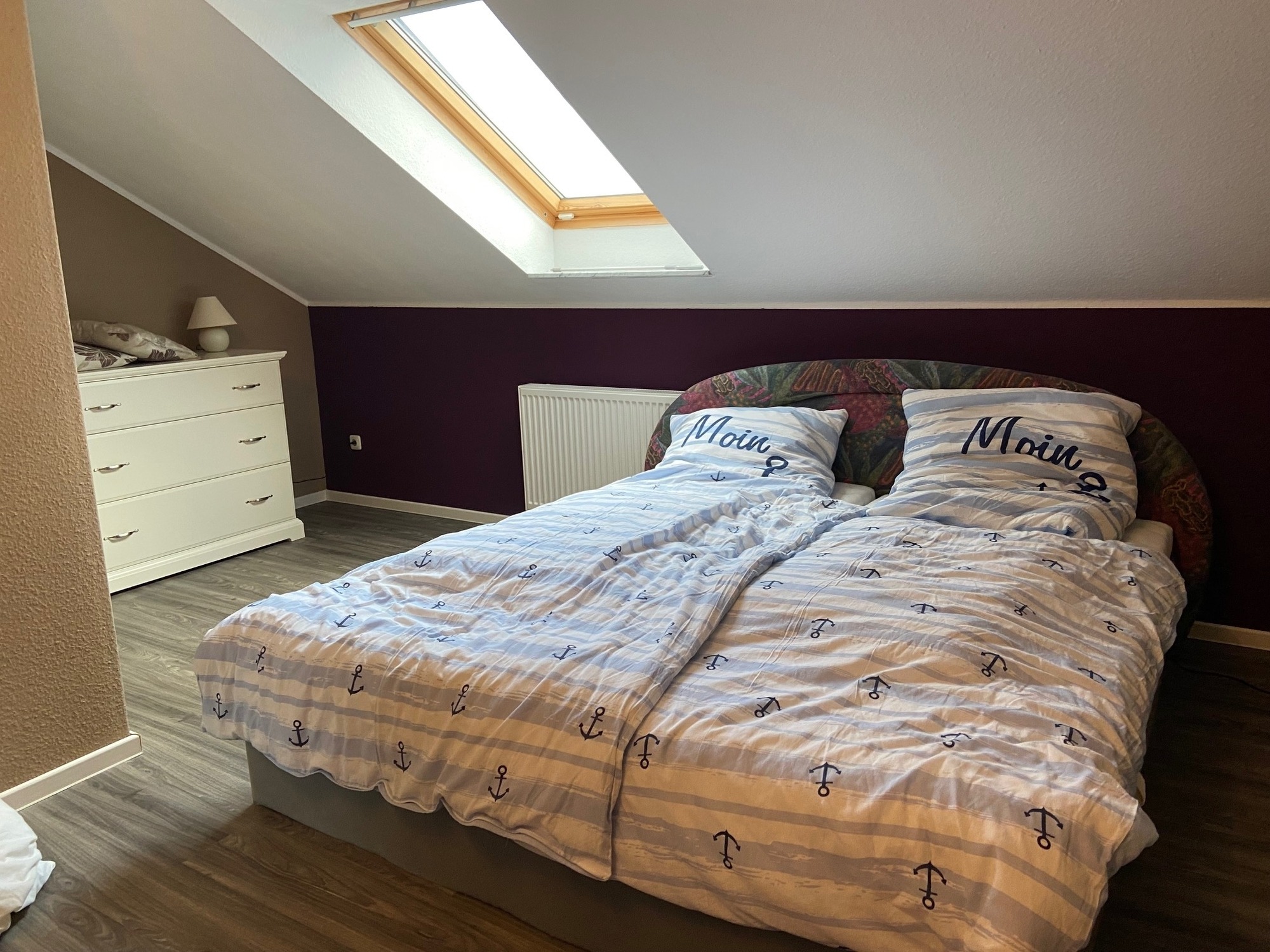 Im Dachgeschoss befindet sich ein viertes Schlafzimmer mit einem Doppelbett (2x90x200) und einer Kommode. Home Office an der Ostsee: Sollten Sie noch ein wenig Arbeit mitbringen steht für Sie im Obergeschoss ein Schreibtisch mit eigenem LAN-Anschluss sowie einem bequemen Schreibtischstuhl bereit. So lässt sich Arbeit und Entspannung am Ostseestrand perfekt miteinander kombinieren.