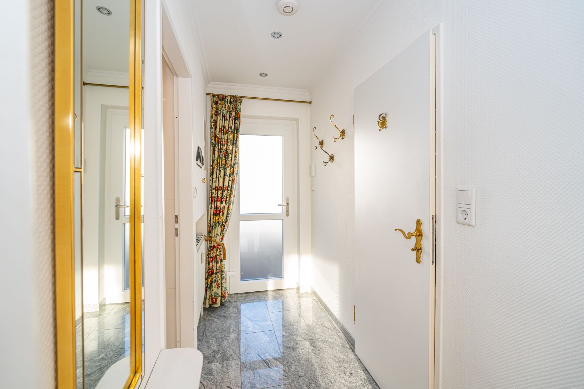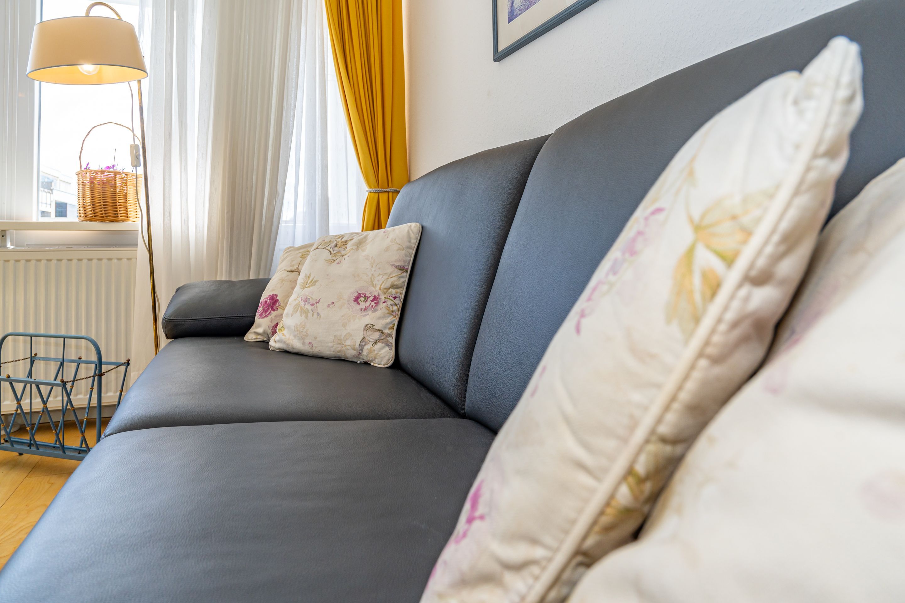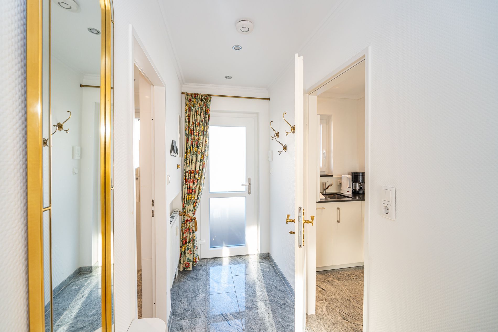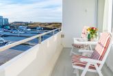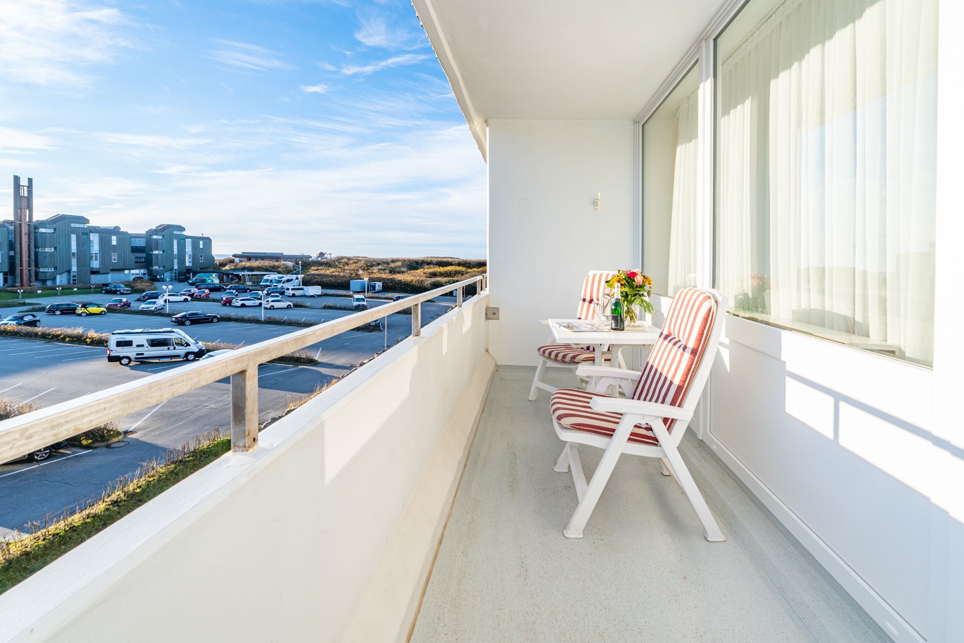 2-Zimmer-Nichtraucher-Ferienwohnung, ca. 66 m², in der 3. Etage für bis zu 4 Personen, mit Süd-Balkon mit kleinem Meeresblick vom Wohn- und Schlafzimmer aus.