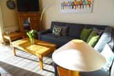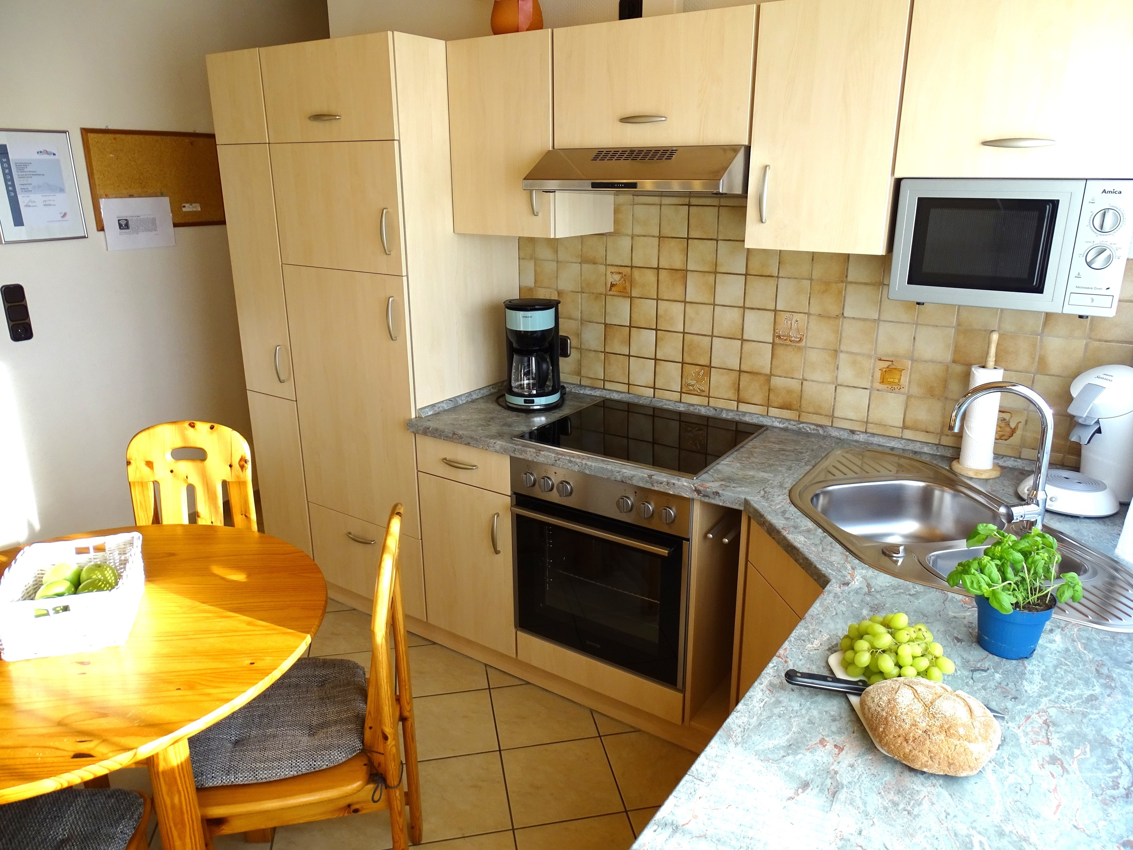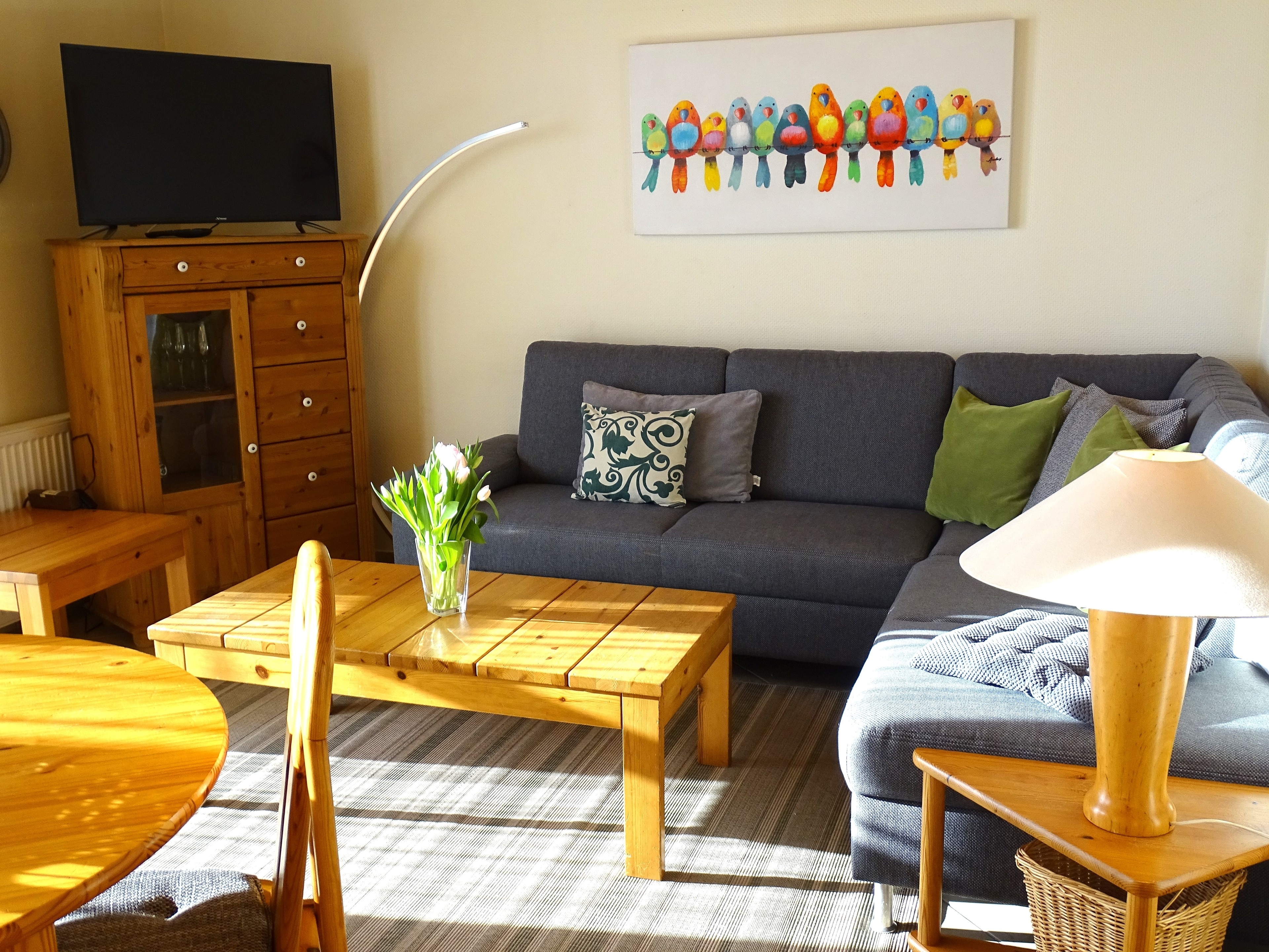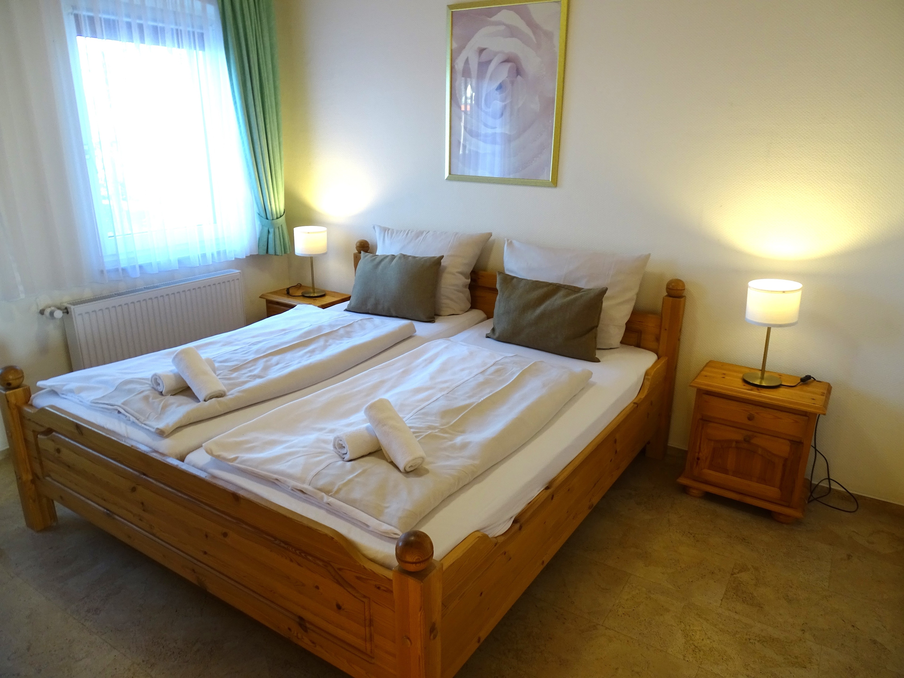 Die 3- Zimmer Ferienwohnung befindet sich im Erdgeschoss des Hauses. Aufgeteilt ist sie in: 2 komplett eingerichtete Schlafzimmer mit Doppelbetten und verstellbaren Gesundheitsrahmen und Federkernauflage. Gemütliches Wohnzimmer mit Sitzgruppe, Eßtisch und integrierter Einbauküche mit dem Ausgang zur möbilierten Südterrasse. Einbauküche voll eingerichtet mit Kühlschrank, Geschirr, 4-Plattenherd mit Backofen, Spülmaschine, Toaster, Kaffeemaschine usw.