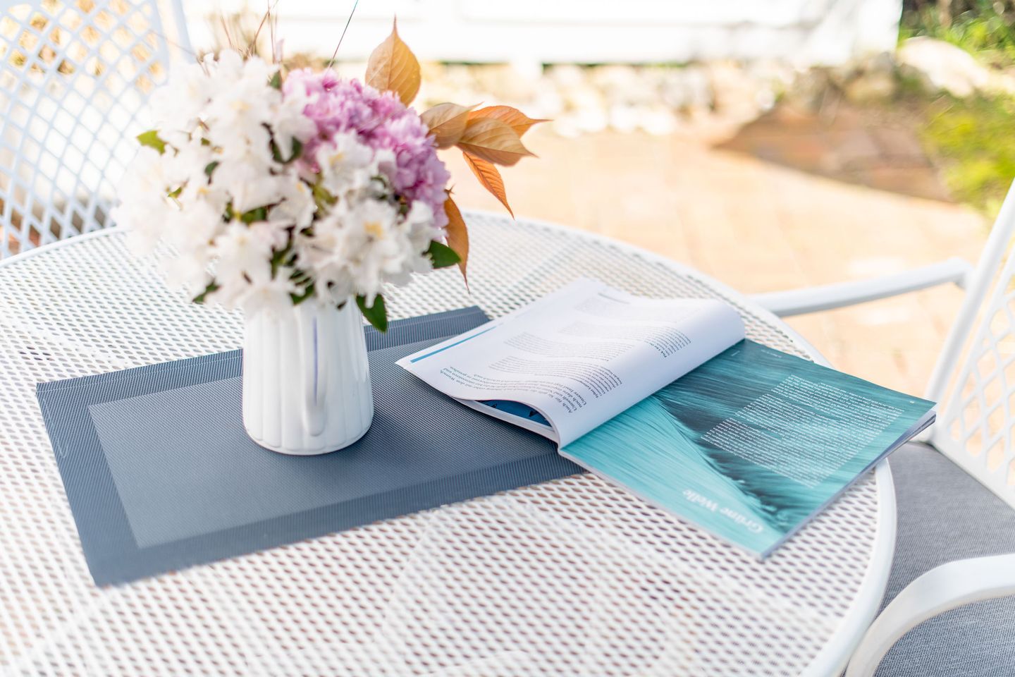 Das helle Wohn- und Esszimmer lädt zum Entspannen und Beisammensein ein. Durch den direkten Zugang zur Terrasse und dem kleinen Gartenanteil können Sie die frische Nordseeluft auch im Strandkorb genießen – ideal für ruhige Abende im Freien. Der gemütliche Essbereich bietet den perfekten Rahmen für gemeinsame Mahlzeiten.
