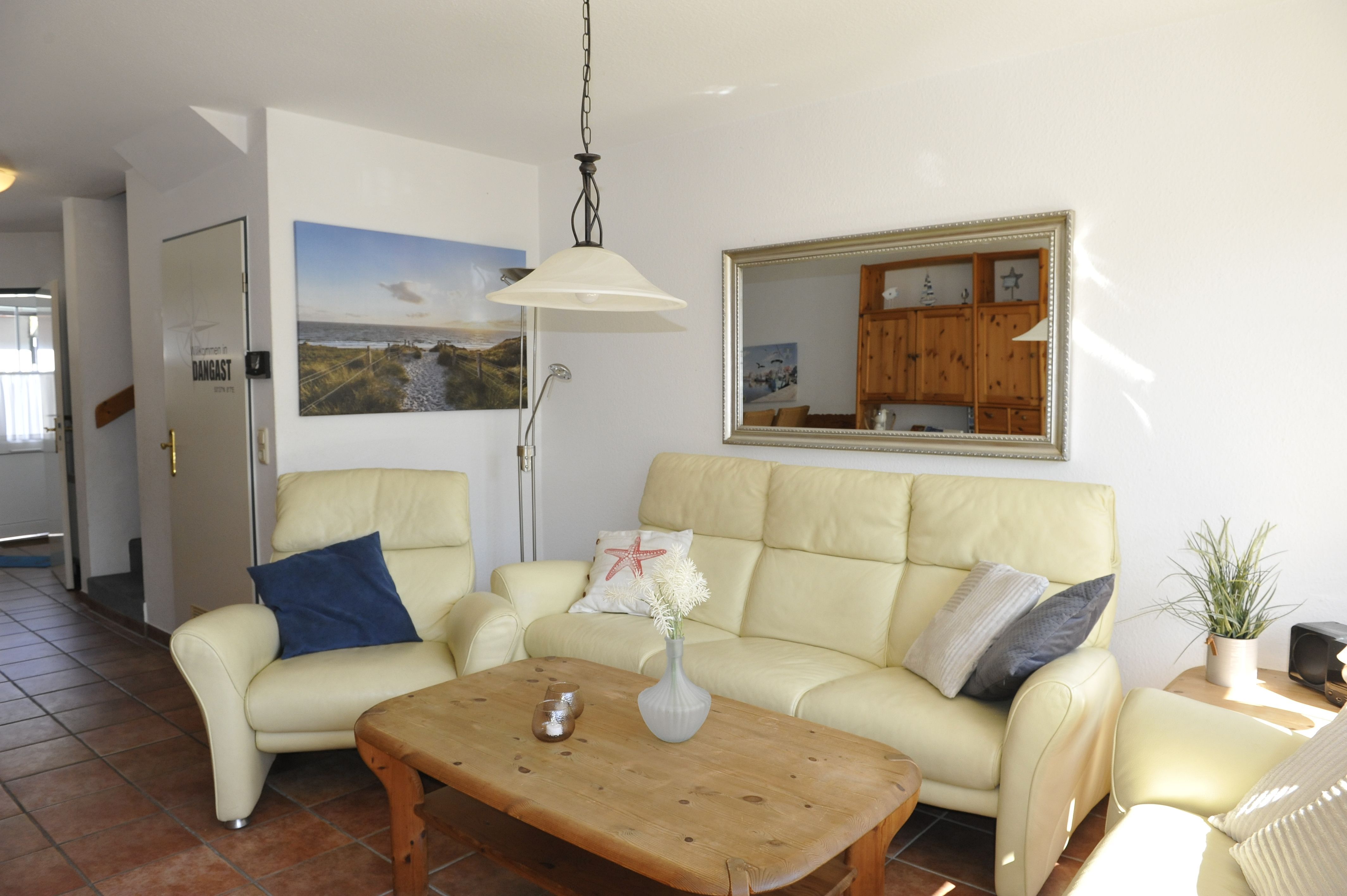 Nordseebad Dangast Ferienhaus Seestern, Hollwert 33 J. Ein familienfreundliches Reihenhaus für 2-6 Personen, ca. 90 qm in ruhiger, aber zentraler Lage, in einer Spielstraße. Zu Fuß erreichen Sie in 5 bis 10 Minuten den Strand, das Meerwasserquellbad, das Weltnaturerbeportal, den kleinen Supermarkt, Restaurants, Kaffees, Kinderspielplätze usw.