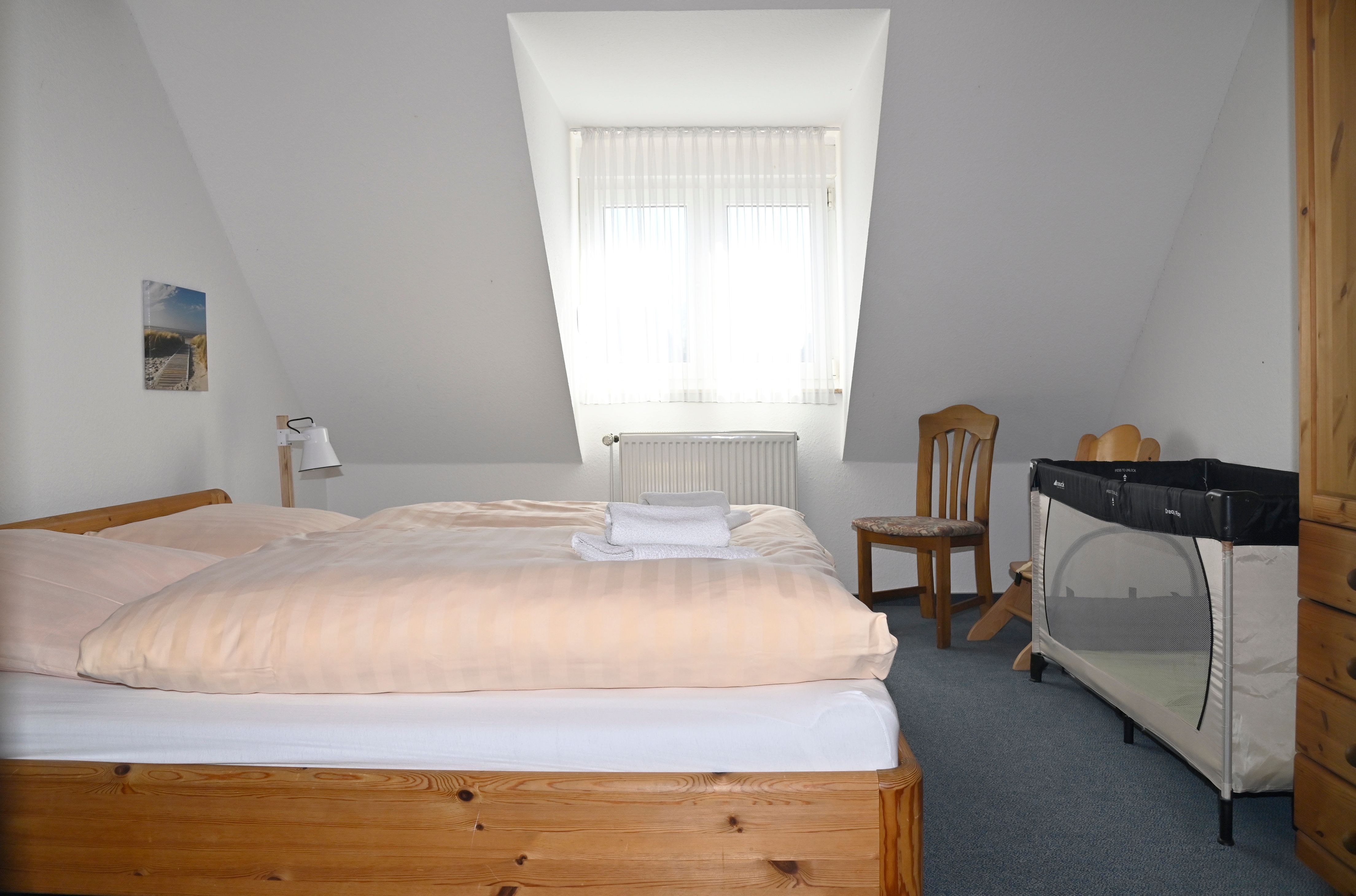 Das ausgebaute Dachstudio bietet nochmals zwei Einzelbetten.