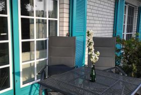 Das hübsch eingerichtete Appartement liegt im Erdgeschoss. Von der Fensterfront und der sonnigen Westterrasse schauen Sie direkt auf den 100 m entfernten See. Die Wohnung bietet Platz für 2 Personen und ist ausgestattet mit einem Doppelbett (Boxspringbett) von 160x200 cm Größe, der Wohnraum sorgt für eine entspannte Atmosphäre. Zur Unterhaltung dient ein Flachbildschirm mit DVD-Player. Vor kurzem erhielt die Wohnung im Zuge einer Grundrenovierung eine schicke neue Einbauküche mit 2-Flammen-Ceranfeld, Geschirrspüler, Mikrowelle mit Grill und etlichen elektrischen Geräten. Die Badsanierung brachte eine neue Glasdusche mit flachem Einstieg und schönen roten, großformatigen Wandfliesen, sowie hochwertigen Armaturen. Ein eigener Parkplatz ist vorhanden. Auch eine Terrasse steht zu Ihrer Verfügung. WLAN ist gratis für unsere Gäste. Waschkeller mit Münzautomaten und Trockenraum im Nebenhaus. Ein Fahrradverleih befindet sich für Sie in unmittelbarer Nähe. Wir würden uns sehr freuen, Sie als unsere Gäste begrüßen zu dürfen.