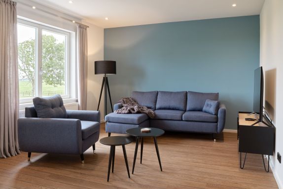 Der Wohn-/Essbereich mit offener Küche ist der Mittelpunkt der Apartments und bietet Platz für die ganze Familie. Die geräumigen Einheiten sind geschmackvoll und komfortabel ausgestattet, eine hochwertige Möblierung sowie der großzügig geschnittene und helle Wohnraum sorgen für echte Urlaubsstimmung.