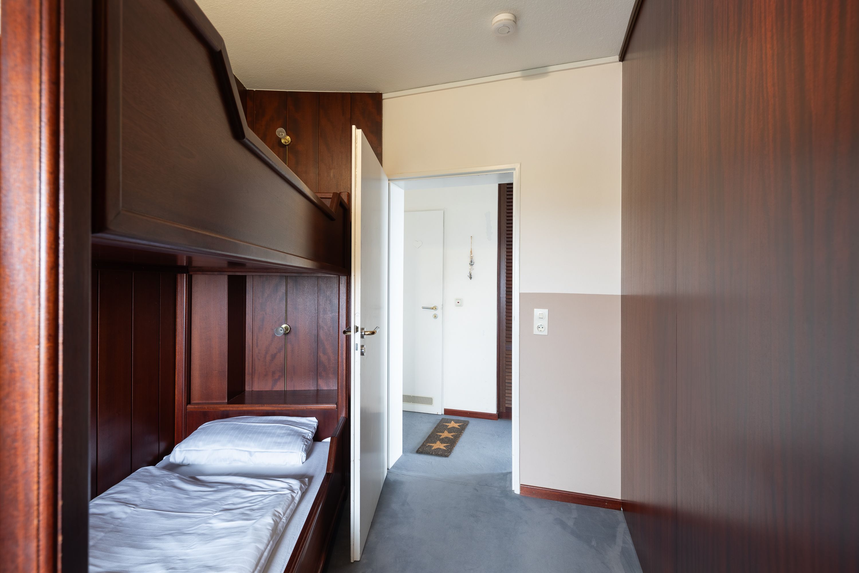 Die 3 Raum Wohnung mit einer Größe von ca. 55 m² Wohnfläche ist komplett bis zu 4 Personen ausgestattet. 1 Schlafzimmer mit Doppelbett und Kleiderschrank, 1 Schlafzimmer mit einem Etagenbett, Wohnzimmer mit Küchenzeile (Cerankochfeld - 2 Kochfelder, Mikrowelle, Geschirrspüler, Kühlschrank mit Gefrierfach), gemütlichem Sofa, Essplatz, 1 TV, Zugang zum Balkon (west, mit direkter Seesicht ), ein innenliegendes Bad mit Dusche und WC, Schwimmbad, Sauna, Tischtennisplatte und einige Fitnessgeräte befinden sich im Haus, Fahrstuhl, PKW Garage direkt am Haus. Keine Haustiere erlaubt, Nichtraucher.