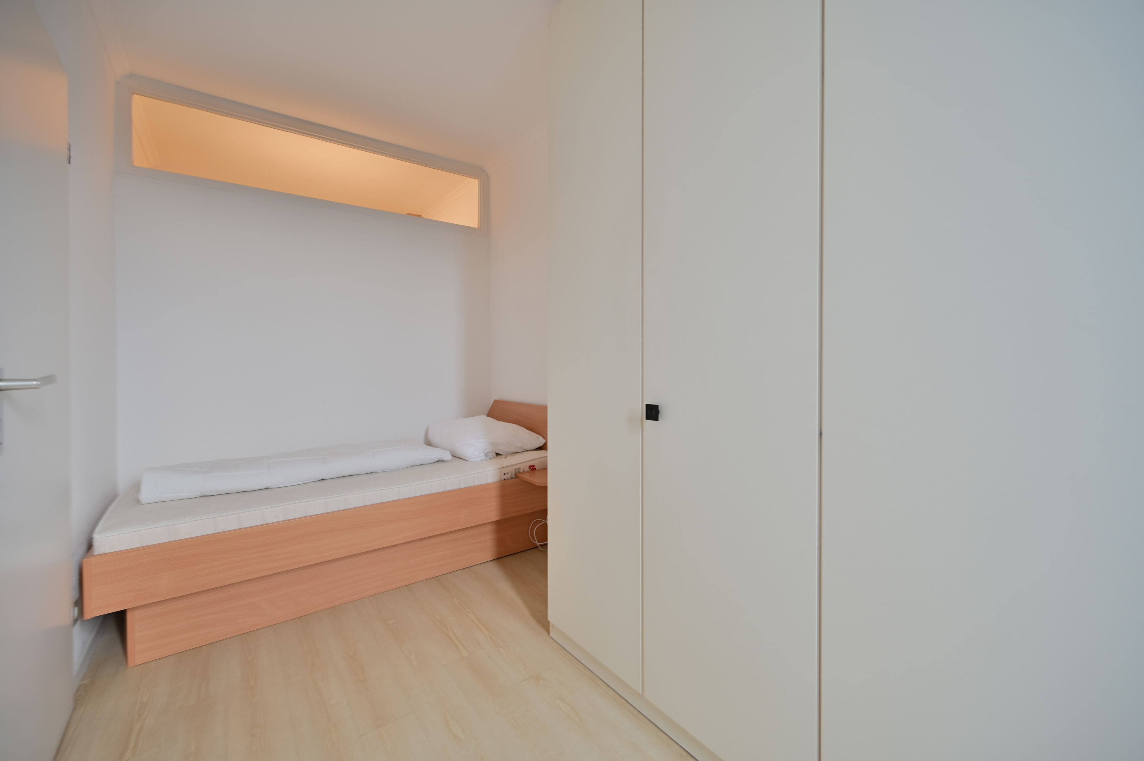 Im separaten Schlafbereich gibt es ein weiteres Einzelbett und einen Kleiderschrank.