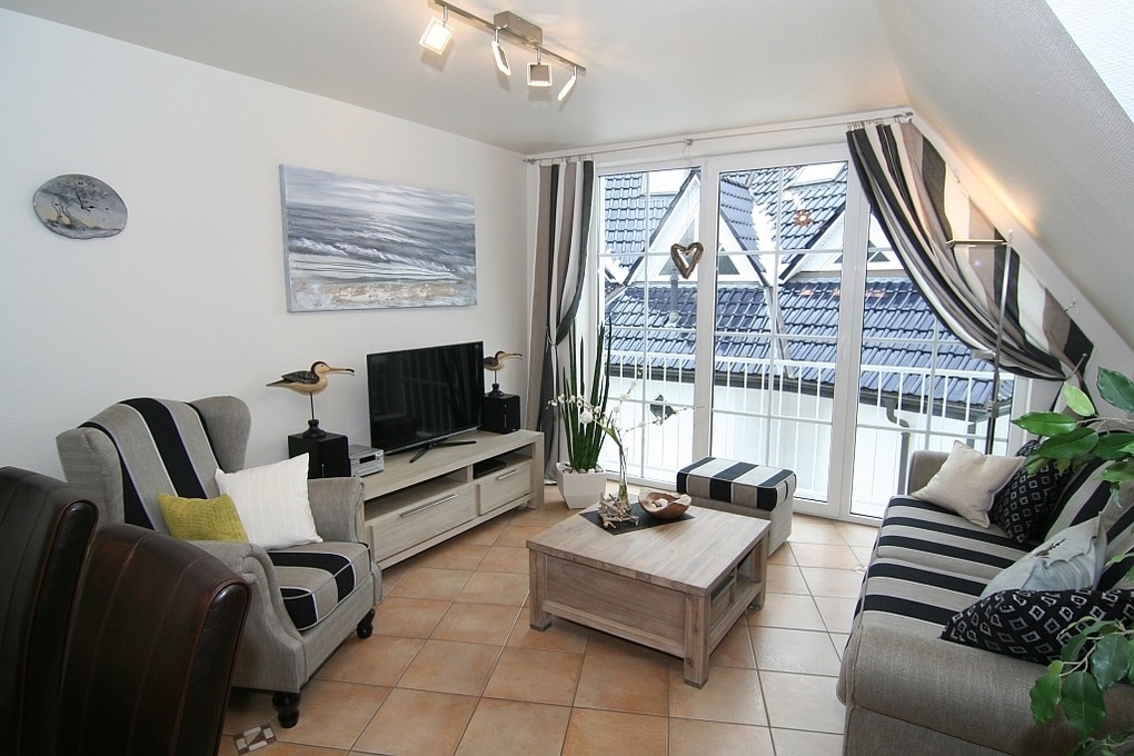Exklusiv stilvoll ausgestattete Ferienwohnung, 3 Schlafzimmer für max. 4 Personen, großzügige 73 qm Wohnfläche, in Strandnähe (150m), sehr ruhige und bevorzugte Wohnlage, WLAN kostenlos, Wohn-/Esszimmer, Badezimmer, Gäste WC, Abstellraum, 10 Min. Fußweg zum Zentrum, großer überdachter Süd-West Balkon, Balkonmöbel, voll ausgestattete Küche incl. Spülmaschine, Backofen, Ceranfeld, Mikrowelle, umfangreiche Geschirr-und Geräteausstattung, 3 Flachbild-Fernseher, Blueray-DVD/CD/Radio, Kaminofen, Fußbodenheizung, Safe, Waschmaschine (Gebühr), Föhn, Insektenschutzgitter in allen Räumen, Verdunkelungs-Gardinen/-Rollos, PKW-Stellplatz, abschließbarer Fahrradschuppen, Bettwäsche und Handtücher gegen Gebühr, Nichtraucher, keine Haustiere . Mindest-Mietzeit 3 Nächte