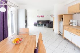 Du und deine Familie werdet euch hier richtig wohlfühlen. Die nach Südwesten ausgerichtete großzügige Terrasse und der angrenzende eigene Garten sind nahezu uneinsehbar und bieten dir optimale Bedingungen zum Sonnenbaden. Im kombinierten Wohn-/Essbereich mit Küchenzeile steht ein großer Esstisch, an dem du leckere Mahlzeiten einnehmen kannst. In der bestens ausgestatteten Küchenzeile kannst du einfach und schnell dein Lieblingsessen zaubern. Die hochwertigen Geräte in der Küche erledigen die alltäglichen Aufgaben für dich. Der große Fernseher eignet sich hervorragend für entspannte Filmabende auf dem gemütlichen Sofa. Deine Kinder freuen sich über die Spielsachen in der Spielkiste. Auch ein Kinderspielteppich ist vorhanden. Das exklusive Wohlfühl-Bad mit Walk-In-Dusche ist im Duschbereich mit einer Fußbodenheizung ausgestattet und bietet damit die idealen Bedingungen für ein erholsames Bad. Von Vorteil ist das vom Duschbad getrennte separate Gäste-WC. Es liegen qualitative Handtücher und Duschtücher bereit, damit du dich rundum wohlfühlst.